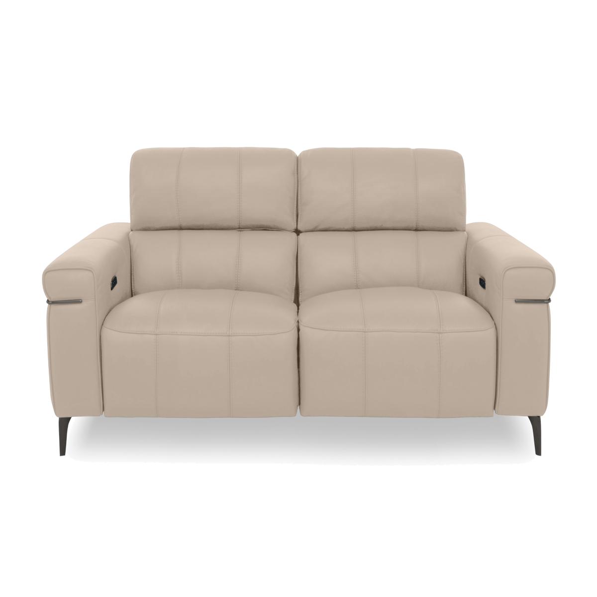 Turn your living room into the most stylish of in-home cinemas with sofas, chairs and footstools from our Homestage range. The collection includes stunning media sofas and armchairs that connect via Bluetooth to your TV or phone and have surround sound speakers hidden in the incredibly comfortable cushioning for the next level in 4. D entertainment. And with power recliners with independently-moving backrests and footrests, perfect-position power headrests, built-in massage units and sprung seats and backs, the comfort is every bit as enthralling. Made in Italy and available in a wide choice of soft fabric and 100% leather upholstery options, the Homestage range is a Furniture Village exclusive. Enjoy perfect comfort with precise power recliners and headrests alongside cool Italian style and 100% leather upholstery with this two-seater sofa. Why you’ll love it Contemporary Italian design ensures you’ll be relaxing in style. Power recliners with independent backrest and footrest motion. Perfect-position headrests mean perfect comfort, every time. Sprung seats and back for superbly balanced support wherever you sit. 100% leather upholstery with linear stitching in a huge choice of on-trend colours. Stiletto-style metal legs with a high-shine nickel-plated finish in black. Matching metal arm trim. Handmade in Italy. A Furniture Village exclusive. This 2-seater leather power recliner sofa is part of our Homestage range. What you need to know Medium comfort level. Seat suspension: no-sag springs. Seat cushioning: foam and inner coil spring. Cushioning is fixed. Back suspension: rubber webbing. Back cushioning: foam and loose fibre. Cushioning is fixed. Arm cushioning: foam and fibre. Please allow time for new recliners to ease. Minor gaps are necessary to ensure ease of recliner motion and may be exaggerated depending on floor type. Leather has unique marks and characteristics with variation in colour and texture. Leather softens with use. Smoothing the tops of leather cushions prevents signs of visual comfort. Please read our upholstery care guide for more advice.