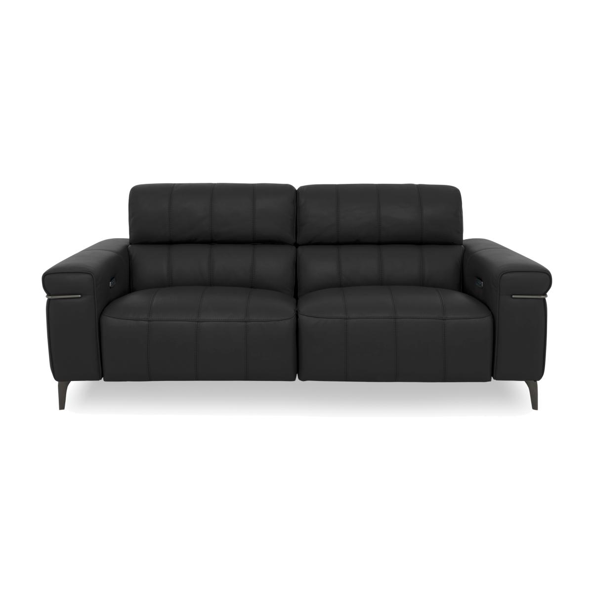 Turn your living room into the most stylish of in-home cinemas with sofas, chairs and footstools from our Homestage range. The collection includes stunning media sofas and armchairs that connect via Bluetooth to your TV or phone and have surround sound speakers hidden in the incredibly comfortable cushioning for the next level in 4. D entertainment. And with power recliners with independently-moving backrests and footrests, perfect-position power headrests and sprung seats and backs, the comfort is every bit as enthralling. Available in a wide choice of soft fabric and 100% leather upholstery options, the Homestage range is a Furniture Village exclusive. Bold modern style meets incredible comfort in this exclusive hand-made sofa with power recliners, perfect-position power headrests and so much more. Why you’ll love it Contemporary design ensures you’ll be relaxing in style. Power recliners with independent backrest and footrest motion. Perfect-position headrests mean perfect comfort, every time. Sprung seats and back for superbly balanced support wherever you sit. 100% leather upholstery with linear stitching in a huge choice of on-trend colours. Stiletto-style metal legs with a high-shine nickel-plated finish in black. Matching metal arm trim. A Furniture Village exclusive. This 3-seater leather power recliner sofa is part of our Homestage range. What you need to know Medium comfort level. Seat suspension: no-sag springs. Seat cushioning: foam and inner coil spring. Cushioning is fixed. Back suspension: rubber webbing. Back cushioning: foam and loose fibre. Cushioning is fixed. Arm cushioning: foam and fibre. Please allow time for new recliners to ease. Minor gaps are necessary to ensure ease of recliner motion and may be exaggerated depending on floor type. Leather has unique marks and characteristics with variation in colour and texture. Leather softens with use. Smoothing the tops of leather cushions prevents signs of visual comfort. Please read our upholstery care guide for more advice. Item code: HOMS3SP-NW-012