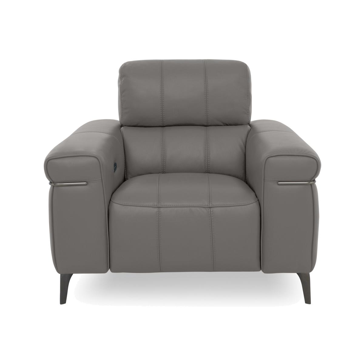 Turn your living room into the most stylish of in-home cinemas with sofas, chairs and footstools from our Homestage range. The collection includes stunning media sofas and armchairs that connect via Bluetooth to your TV or phone and have surround sound speakers hidden in the incredibly comfortable cushioning for the next level in 4. D entertainment. And with power recliners with independently-moving backrests and footrests, perfect-position power headrests, built-in massage units and sprung seats and backs, the comfort is every bit as enthralling. Made in Italy and available in a wide choice of soft fabric and 100% leather upholstery options, the Homestage range is a Furniture Village exclusive. Cool Italian style meets power comfort in this superb armchair that’s handmade in Italy exclusively for Furniture Village. Why you’ll love it Contemporary Italian design ensures you’ll be relaxing in style. Power recliner with independent backrest and footrest motion. Perfect-position headrest means perfect comfort, every time. Sprung seat and back for superbly balanced support. 100% leather upholstery with linear stitching in a huge choice of on-trend colours. Stiletto-style metal legs with a high-shine nickel-plated finish in black. Matching metal arm trim. Handmade in Italy. A Furniture Village exclusive. This leather power recliner chair is part of our Homestage range. What you need to know Medium comfort level. Seat suspension: no-sag springs. Seat cushioning: foam and inner coil spring. Cushioning is fixed. Back suspension: rubber webbing. Back cushioning: foam and loose fibre. Cushioning is fixed. Arm cushioning: foam and fibre. Please allow time for new recliners to ease. Minor gaps are necessary to ensure ease of recliner motion and may be exaggerated depending on floor type. Leather has unique marks and characteristics with variation in colour and texture. Leather softens with use. Smoothing the tops of leather cushions prevents signs of visual comfort. Please read our upholstery care guide for more advice.