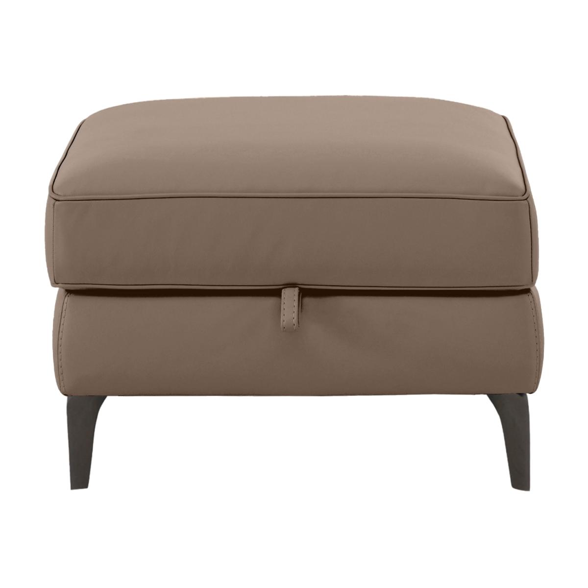 Turn your living room into the most stylish of in-home cinemas with sofas, chairs and footstools from our Homestage range. The collection includes stunning media sofas and armchairs that connect via Bluetooth to your TV or phone and have surround sound speakers hidden in the incredibly comfortable cushioning for the next level in 4. D entertainment. And with power recliners with independently-moving backrests and footrests, perfect-position power headrests, built-in massage units and sprung seats and backs, the comfort is every bit as enthralling. Made in Italy and available in a wide choice of soft fabric and 100% leather upholstery options, the Homestage range is a Furniture Village exclusive. Beautifully upholstered in leather and set on stylish metal legs, this storage footstool offers on-trend style on the outside with roomy storage on the inside. Why you’ll love it Contemporary Italian design ensures you’ll be relaxing in style. Storage compartment makes this footstool versatile as well as fashionable. 100% leather upholstery with linear stitching in a huge choice of on-trend colours. Stiletto-style metal legs with a high-shine nickel-plated finish in black. Handmade in Italy. A Furniture Village exclusive. This leather storage footstool is part of our Homestage range. What you need to know Cushioning: foam. Leather has unique marks and characteristics with variation in colour and texture. Leather softens with use. Smoothing the tops of leather cushions prevents signs of visual comfort. Please read our upholstery care guide for more advice.