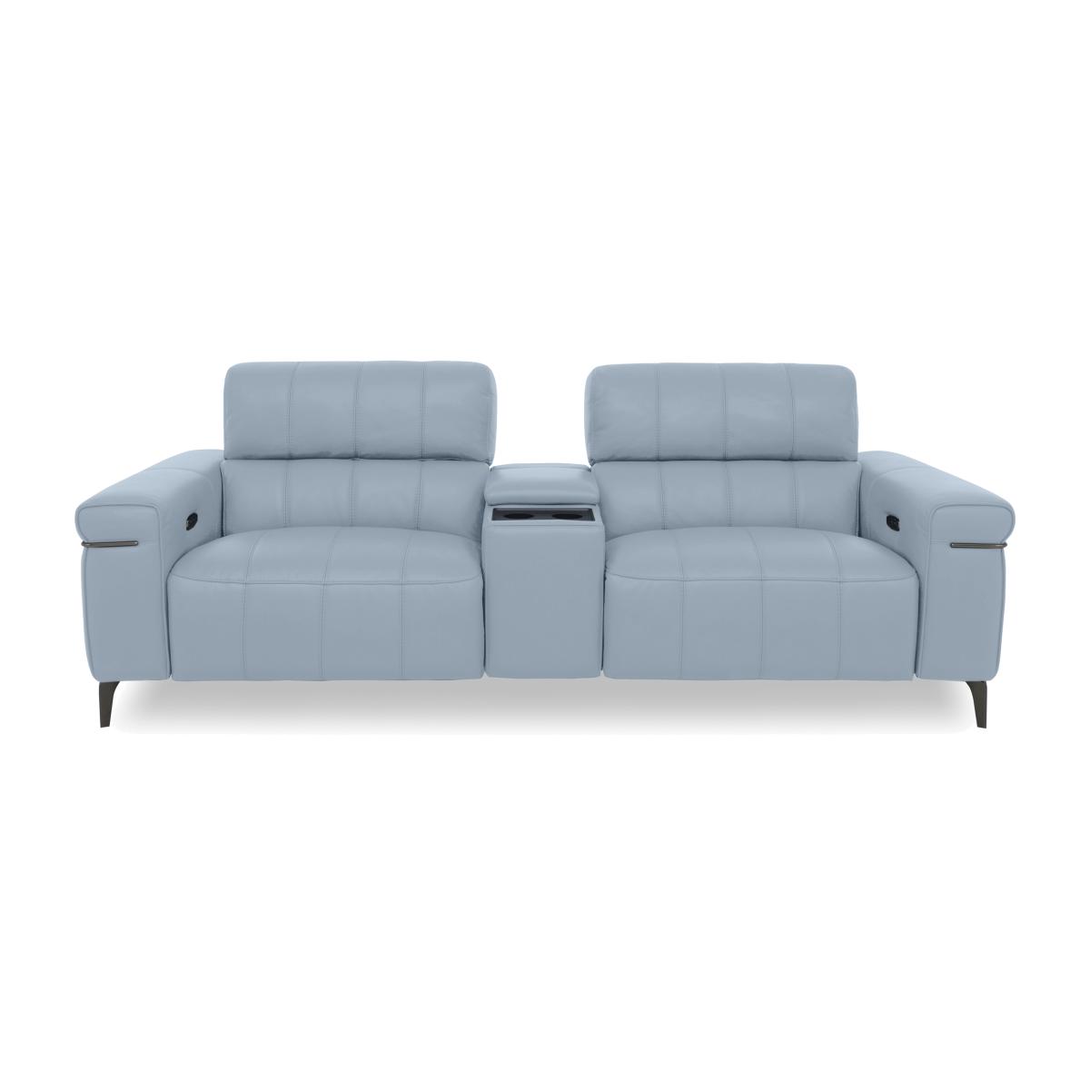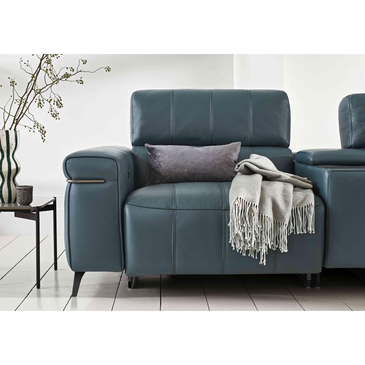 Turn your living room into the most stylish of in-home cinemas with sofas, chairs and footstools from our Homestage range. The collection includes stunning media sofas and armchairs that connect via Bluetooth to your TV or phone and have surround sound speakers hidden in the incredibly comfortable cushioning for the next level in 4. D entertainment. And with power recliners with independently-moving backrests and footrests, perfect-position power headrests and sprung seats and backs, the comfort is every bit as enthralling. Available in a wide choice of soft fabric and 100% leather upholstery options, the Homestage range is a Furniture Village exclusive. With power recliners as well as Bluetooth and surround sound, this three-seater leather media sofa brings a 4. D cinema experience to your living room. Why you’ll love it Cinema-style entertainment meets contemporary style in this media sofa. Bluetooth connection to your TV or phone for an immersive 4. D experience. Surround sound speakers are embedded into sofa cushioning. With wireless, USB and USB-C charging. Media console has entertainment and comfort controls, cup holders and storage space. Power recliners feature independent backrest and footrest motion. Perfect-position headrests mean perfect comfort, every time. Sprung seats and back for superbly balanced support wherever you sit. 100% leather upholstery with linear stitching in a huge choice of on-trend colours. Stiletto-style metal legs with a high-shine nickel-plated finish in black. Matching metal arm trim. A Furniture Village exclusive. This 3-seater leather power recliner media sofa is part of our Homestage range. What you need to know Medium comfort level. Seat suspension: no-sag springs. Seat cushioning: foam and inner coil spring. Cushioning is fixed. Back suspension: rubber webbing. Back cushioning: foam and loose fibre. Cushioning is fixed. Arm cushioning: foam and fibre. Please allow time for new recliners to ease. Minor gaps are necessary to ensure ease of recliner motion and may be exaggerated depending on floor type. Leather has unique marks and characteristics with variation in colour and texture. Leather softens with use. Smoothing the tops of leather cushions prevents signs of visual comfort. Please read our upholstery care guide for more advice. Item code: HOMSM3SPNC-019