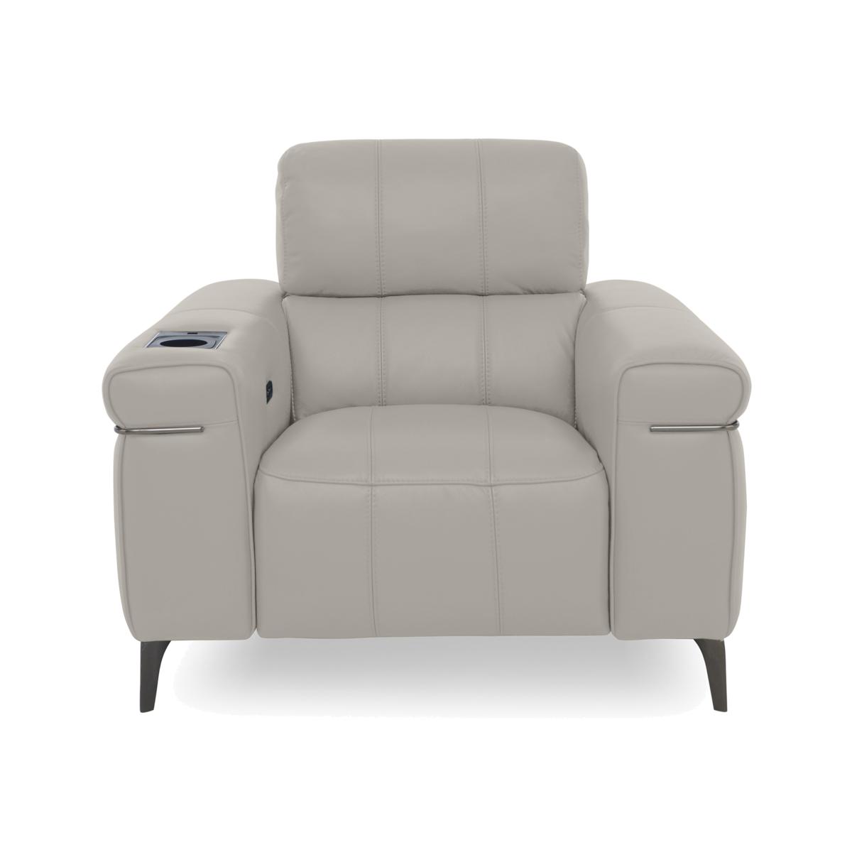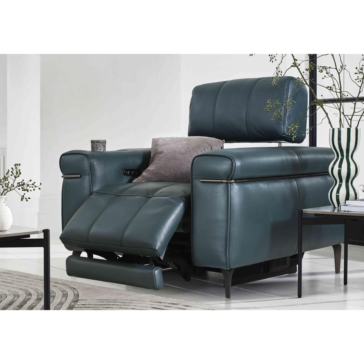 Turn your living room into the most stylish of in-home cinemas with sofas, chairs and footstools from our Homestage range. The collection includes stunning media sofas and armchairs that connect via Bluetooth to your TV or phone and have surround sound speakers hidden in the incredibly comfortable cushioning for the next level in 4. D entertainment. And with power recliners with independently-moving backrests and footrests, perfect-position power headrests and sprung seats and backs, the comfort is every bit as enthralling. Available in a wide choice of soft fabric and 100% leather upholstery options, the Homestage range is a Furniture Village exclusive. This power recliner chair in 100% leather delivers more than style. This media chair comes with Bluetooth and surround sound built in for an at-home cinematic experience like never before. Why you’ll love it Cinema-style entertainment meets contemporary style in this media chair. Bluetooth connection to your TV or phone for an immersive 4. D experience. Surround sound speakers are embedded into cushioning. With wireless, USB and USB-C charging. Power recliner features independent backrest and footrest motion. Perfect-position headrest means perfect comfort, every time. Sprung seat and back for superbly balanced support wherever you sit. 100% leather upholstery with linear stitching in a huge choice of on-trend colours. Stiletto-style metal legs with a high-shine nickel-plated finish in black. Matching metal arm trim. A Furniture Village exclusive. This leather power recliner media chair is part of our Homestage range. What you need to know Medium comfort level. Seat suspension: no-sag springs. Seat cushioning: foam and inner coil spring. Cushioning is fixed. Back suspension: rubber webbing. Back cushioning: foam and loose fibre. Cushioning is fixed. Arm cushioning: foam and fibre. Please allow time for new recliners to ease. Minor gaps are necessary to ensure ease of recliner motion and may be exaggerated depending on floor type. Leather has unique marks and characteristics with variation in colour and texture. Leather softens with use. Smoothing the tops of leather cushions prevents signs of visual comfort. Please read our upholstery care guide for more advice. Item code: HOMSMPCHNC-001