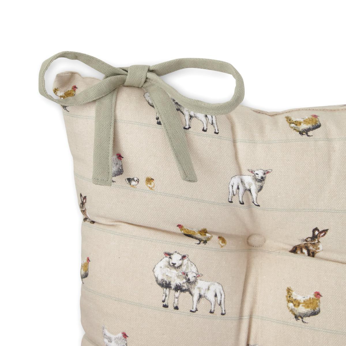 Ideal for adding a unique and beautiful touch to any chair, this homestead seat pad with watercolour animals would compliment any chair beautifully. Crafted from cotton, this seat pad is durable and easy to clean. This seat pad features ties for easy fastening.