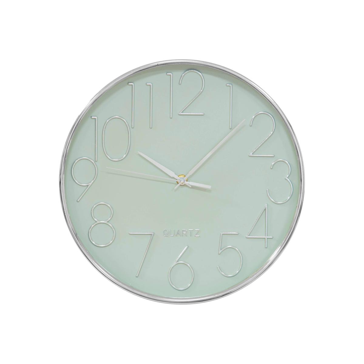 * Raised numerals * Precise quartz movement * 30cm diameter * Choice of colours Keep track of time in style with this sleek and contemporary wall clock. The polished frame and simple face create a modern look that suits any space. Raised numbers add subtle depth, while the metal hands complete the sophisticated design. At 30cm in diameter, it’s the perfect size for everything from cosy corners to busy office walls.