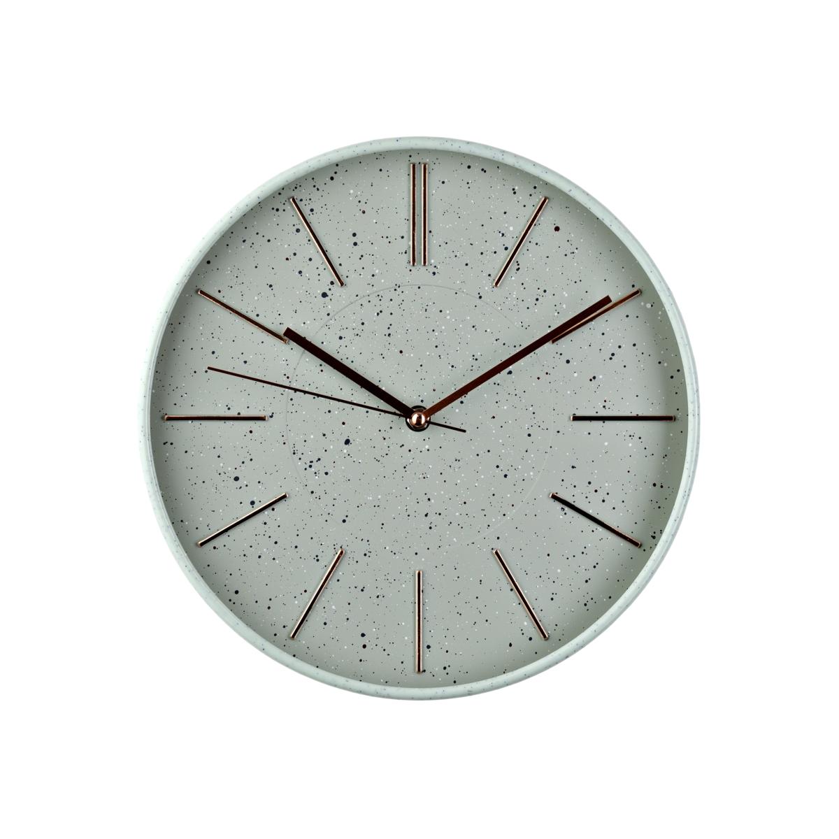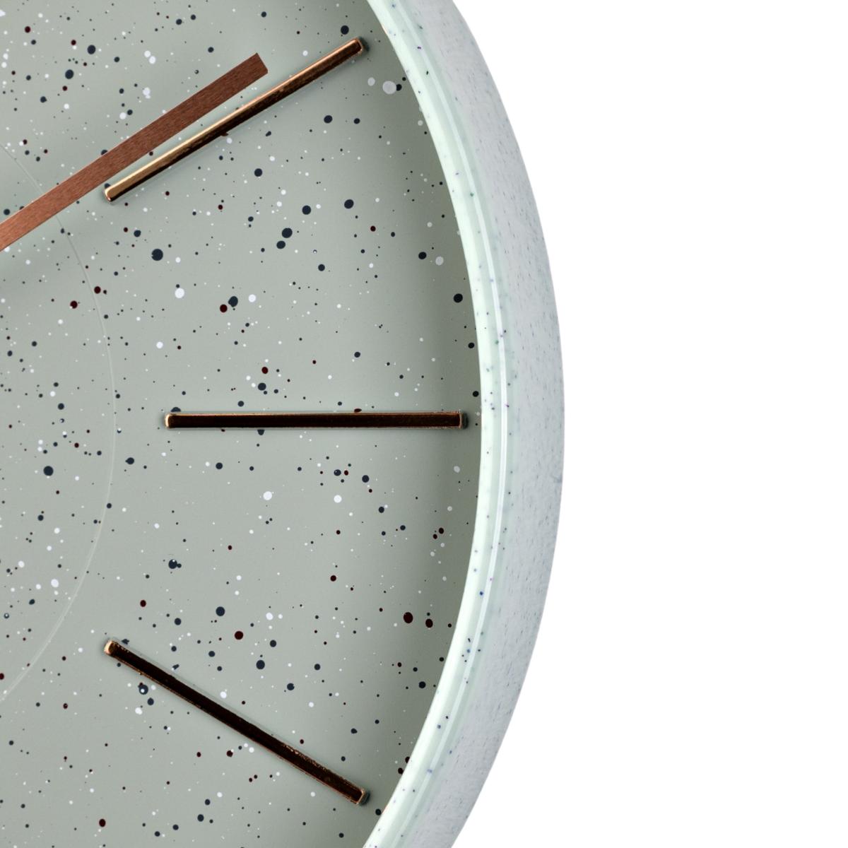* Speckled finish * Roman numerals * Versatile for various spaces This Hometime Speckled Wall Clock features a unique green speckled finish that extends to the clock face, bringing a modern touch to your space. The metal Roman numerals and black clock hands offer a bold contrast, making it a true statement piece. Its versatile design fits seamlessly into various home interiors, adding character and style to any room.