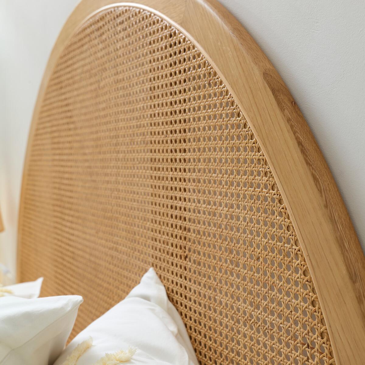 Rounded shape, rattan canework... The Homi headboard is part of the vintage trend. Its simple design blends perfectly into all styles of decoration. Created by La Redoute Interiors. Product Details • Structure in solid finger-jointed oak veneered with oak veneer, reinforcing bars in poplar veneered with oak. FSC® certified wood • Nitrocellulose varnish finish • Woven rattan • May be fixed to wall Dimensions • Total Length: 165cm • Height: 140cm • Depth: 4cm • Height of legs: 30cm • Weight: 14.4kgDelivery:. Sold pre-assembled. Note! Please check that all access points are large enough to accommodate your delivery (doors, stairs, lifts). • WOOD FROM SUSTAINABLY MANAGED FORESTS. FSC® certified wood comes from forests that are environmentally, socially and economically well managed. Dimensions and weight of parcel • 1 parcel • L175 x H149 x 9cm. 15kg