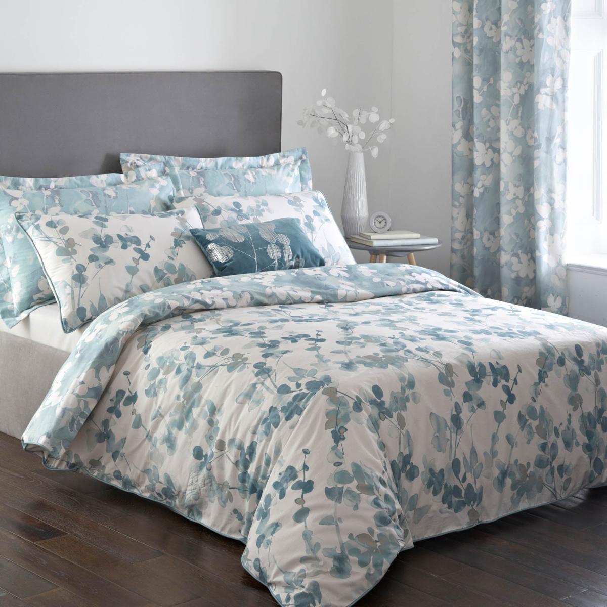 Crafted from a blend of polyester and cotton for comfort and durability, this duvet cover set is designed with a pale blue floral pattern. Finished with pale blue piping, this set comes with matching pillowcase(s) included and is available in a selection of sizes.