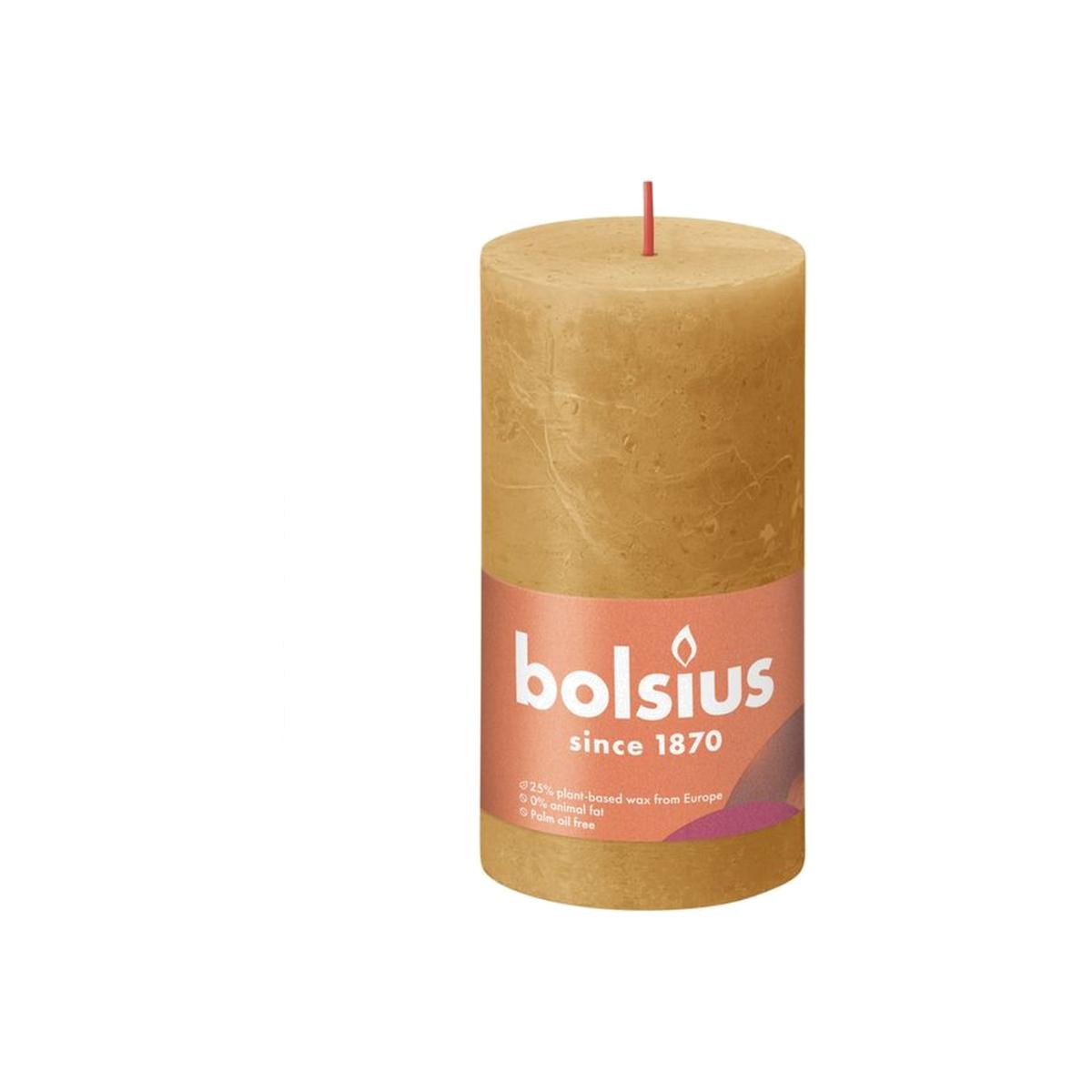 Make every moment a special one! The natural light of candles brings a unique warmth and ambience into your home and makes it cosy. Bolsius's rustic pillar candle coming in the yellow ochre tone Honeycomb Yellow boasts a full 13cm in height and burns for a good 60 hours. The golden yellow ochre colour immediately adds a touch of warmth to your interiors. The mark of a quality candle is its long burning time and its ability to maintain its shape while burning. Bolsius's rustic candle doesn't smoke or drip and has a nice, rustic finish. Made with love for people and planet. With natural, vegan wax from Europe and zero palm oil. The cotton wick is weaved in such a way that your flame remains stable. In that way no black smoke, soot deposits or smoke arises whilst burning.