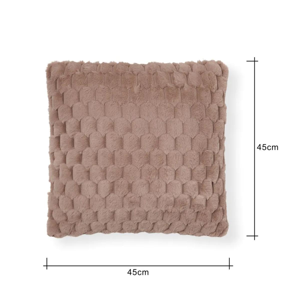 Add a touch of elegance to your decor with the Honeycomb Faux Fur Cushion in Mink, perfect for creating a warm and inviting atmosphere. The mink tone offers subtle sophistication, while the honeycomb pattern adds depth and visual interest. Compact yet luxurious, this cushion works beautifully across sofas, chairs, or beds.