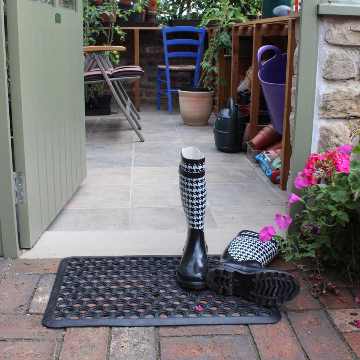 Popular value for money scraper mat. A classic honeycomb ring design that is suitable for year-round use. The doormat can be easily cleaned using either a shake or hose.