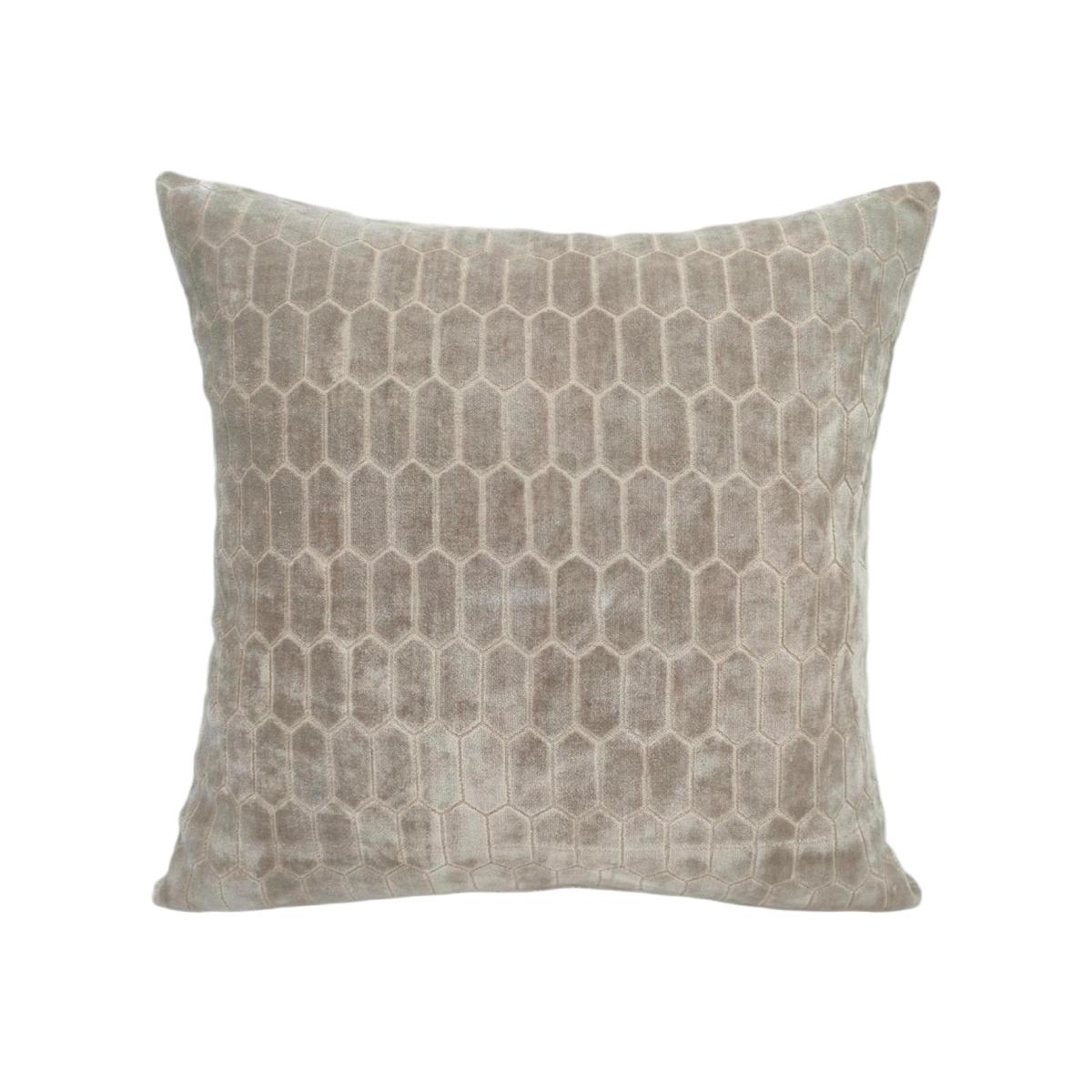 This stylish velvet cushion has a simple geometric pattern of hexagons that creates a lovely honeycomb effect. Available in a sophisticated ivory colour, it works in any style of interior. Why you'll love it This small square cushion’s hexagonal honeycomb pattern is modern and glam. Luxurious cut velvet cover in a neutral ivory colour. Super-soft 100% feather filling. Also available in a larger size. This cushion is part of the Furniture Village home accessories collection. What you need to know 60% polyester, 40% viscose. 100% feather filling. For indoor use only. To maintain cushion shape, remove cover and plump inner regularly. Dry clean only. Dimensions Height: 45 cm (18 in). Width: 45 cm (18 in). Item code: HNCBCUSSTPE-001