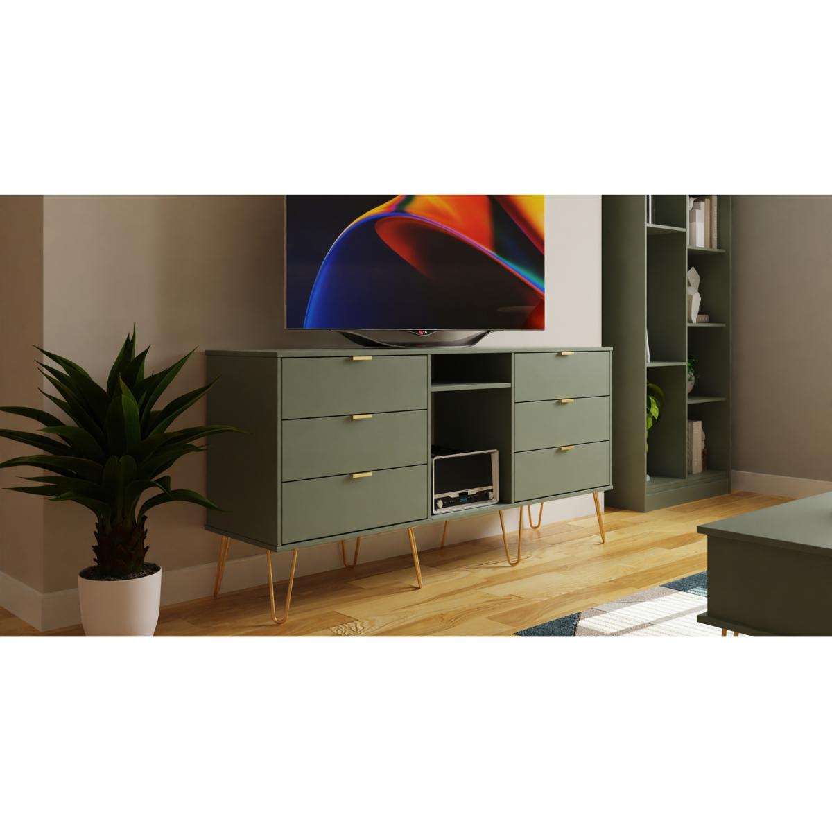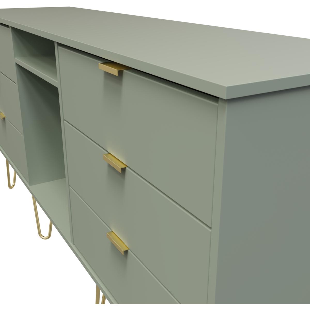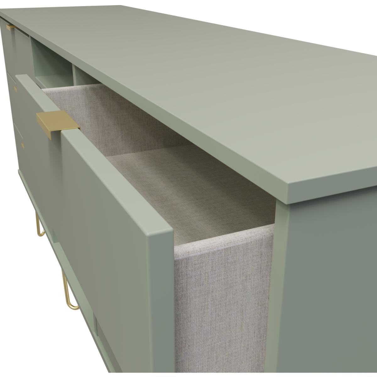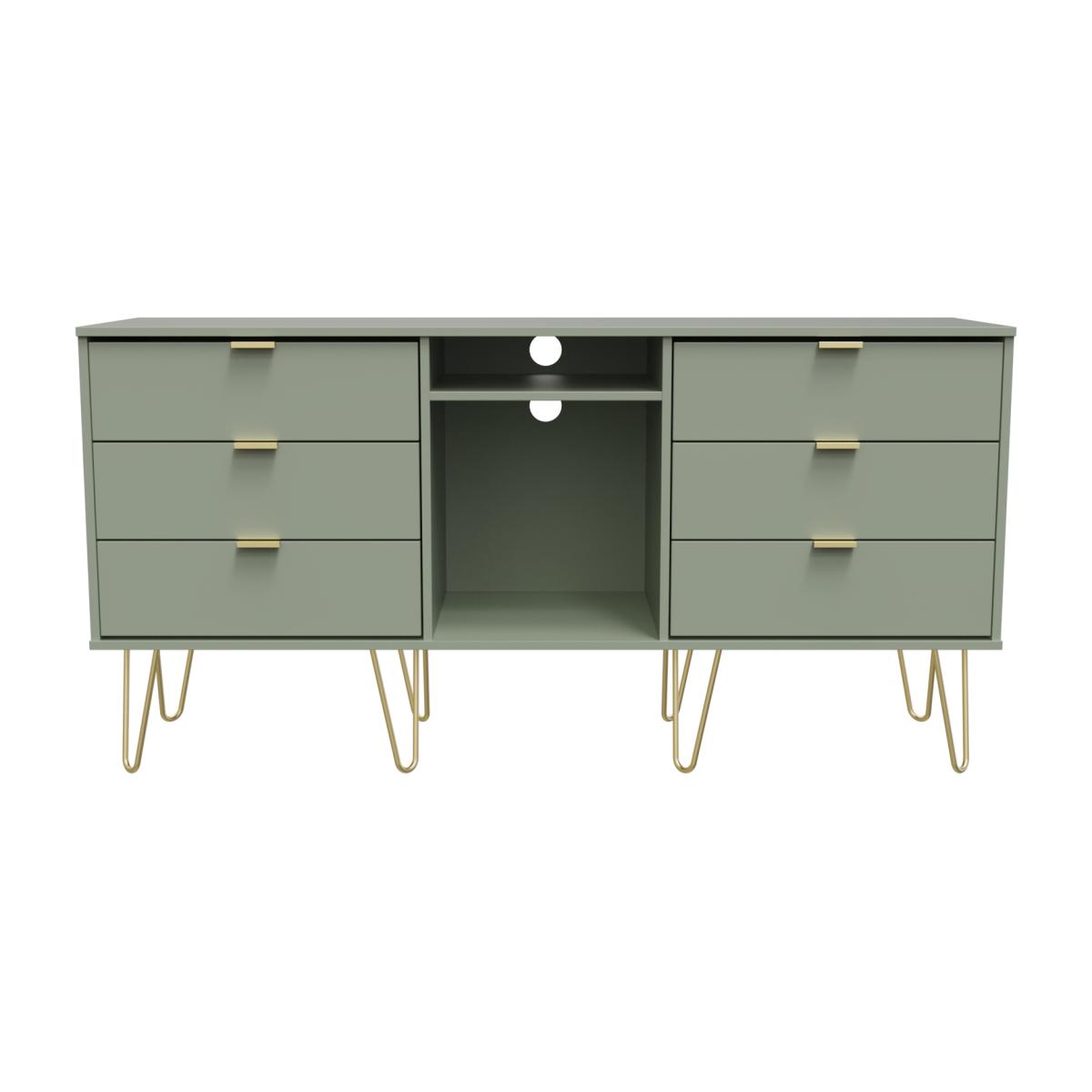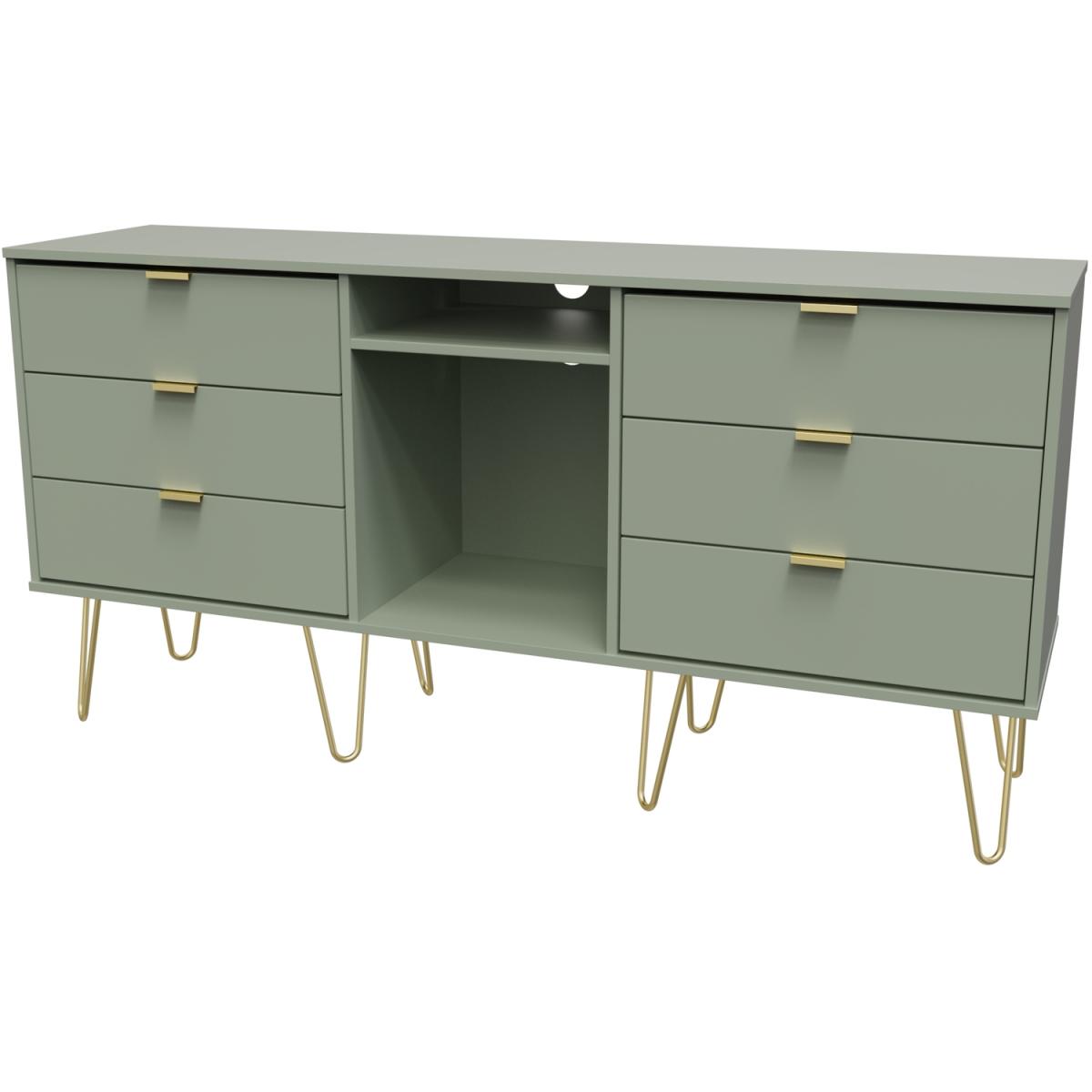 This wide storage unit features 6 storage drawers with a central shelf. Suitable for use as a TVMedia unit or sideboard. The modern, stylish Hong Kong range is available in a range of durable scratch resistant colour or natural wood finishes. With pull handles on all doors and drawers, with black sleigh metal legs. All drawers come with long lasting metal drawer runners and a linen effect interior. All our furniture is made in the United Kingdom, to the highest quality. It is delivered direct to your location of choice by one of our two man delivery teams, and come full assembled (although legs may be removed to prevent damage in transit).