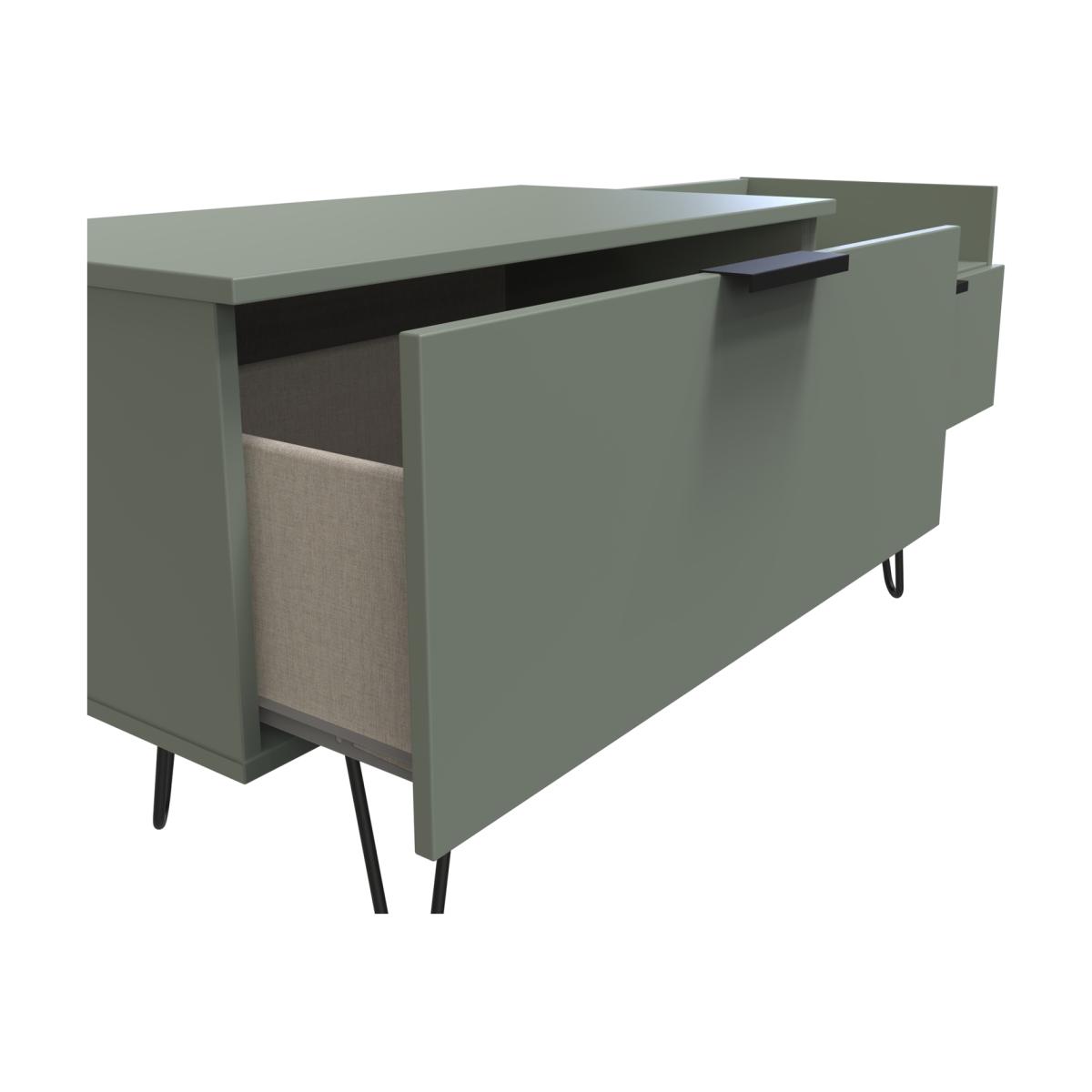 This modern Console unit features a top surface with 2 different levels as well as 2 storage drawers of different depths. Choosing between subtle neutral and elegant earthy tones, you'll be amazed at how well this collection can enhance a space. You can be certain it will be engaging, with a sophisticated and durable finish. The extensive colour options are complimented with a variety of different leg options. All our furniture is made to order in the United Kingdom, to the highest quality. It is delivered within 10 working days direct to your location of choice by one of our two man delivery teams, and comes fully assembled (although legs may be removed to prevent damage in transit).