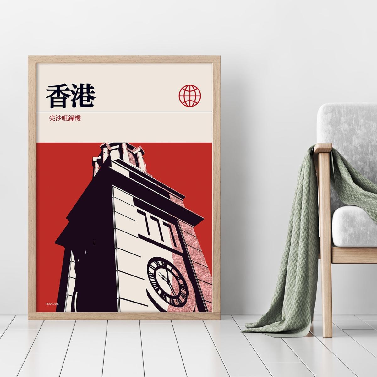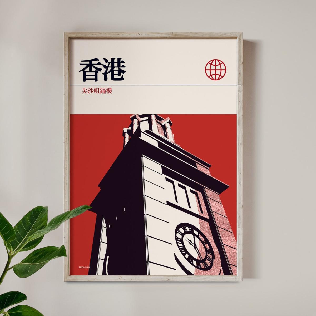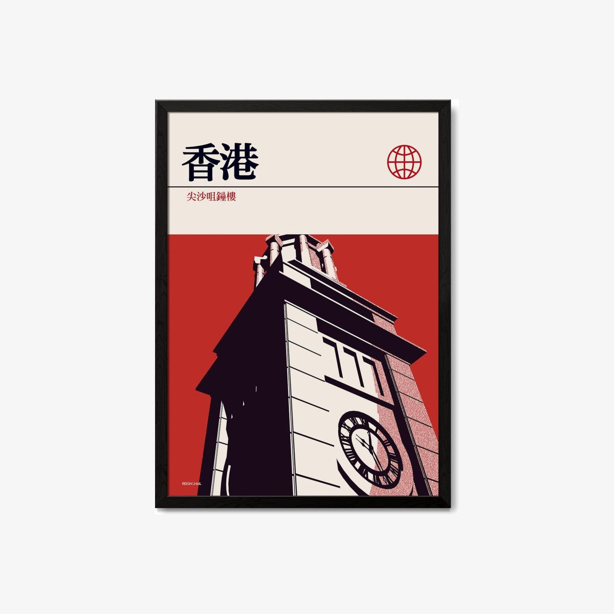 Hong Kong Clock Tower Modernist Architectural Travel Poster A1 594 X 841Mm Reign & Hail