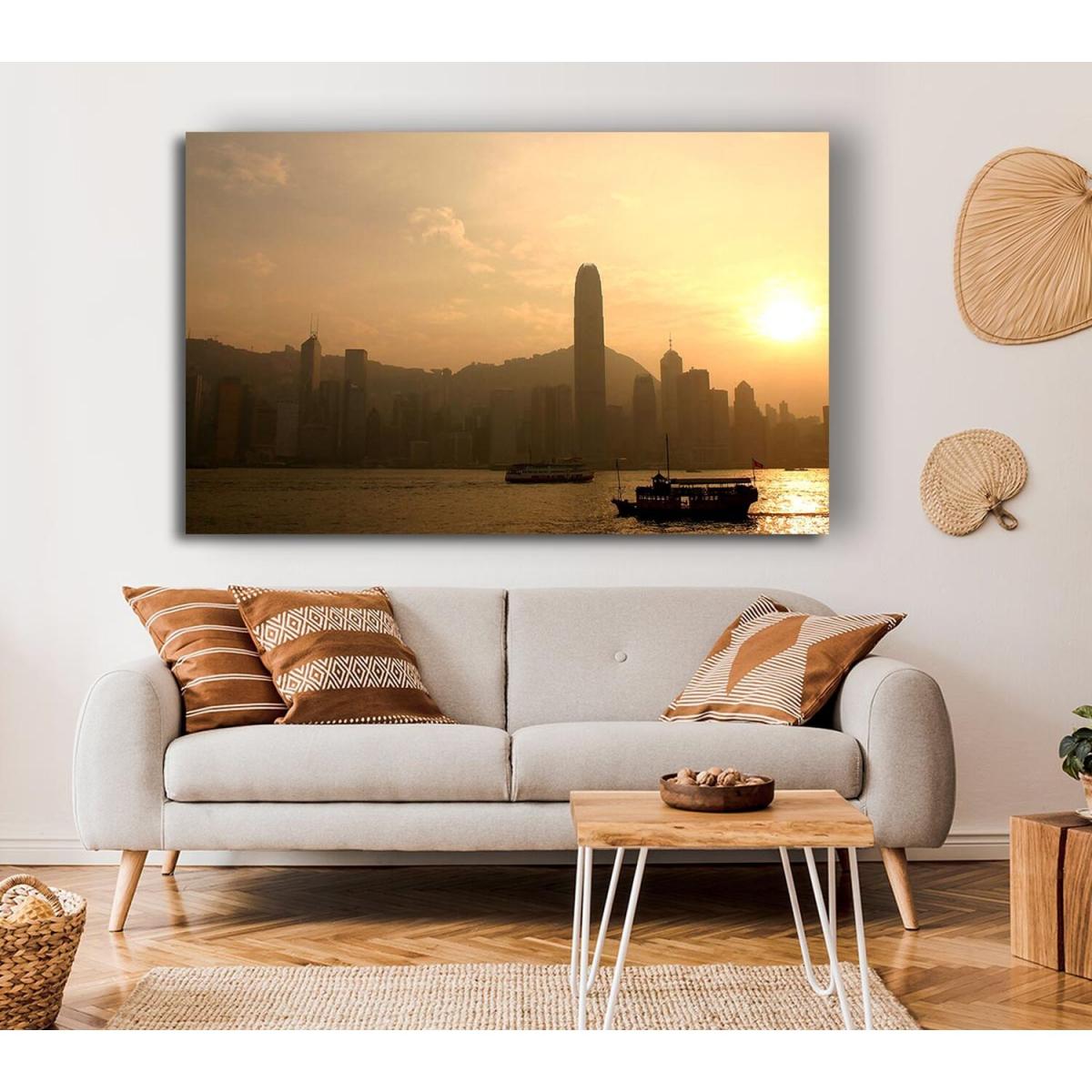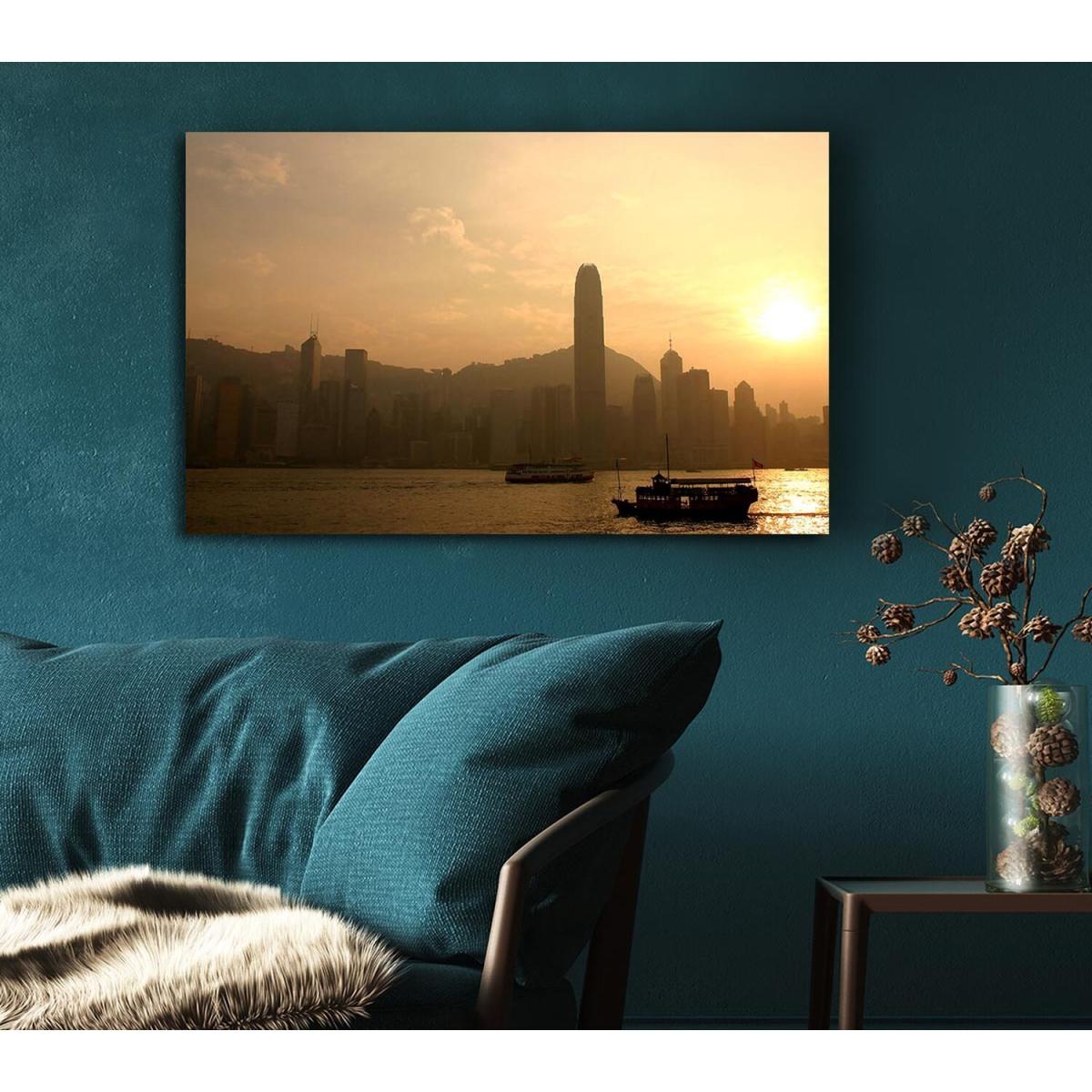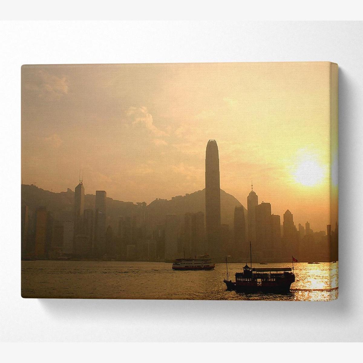 Hong Kong Misty Morning Sunrise Canvas Print Wall Art - Yellow / 101.6cm