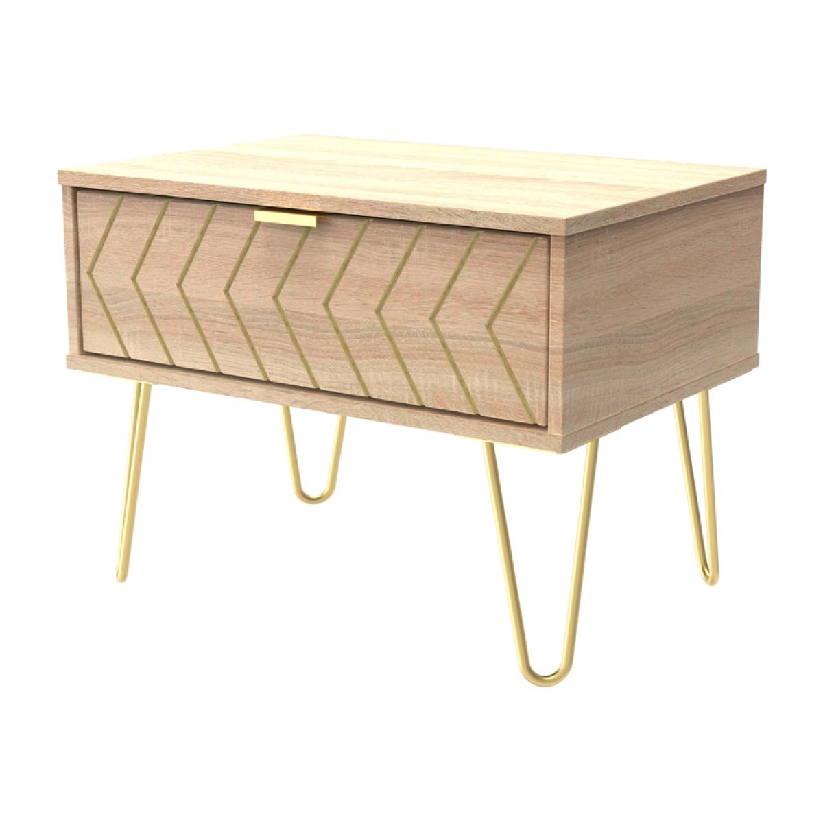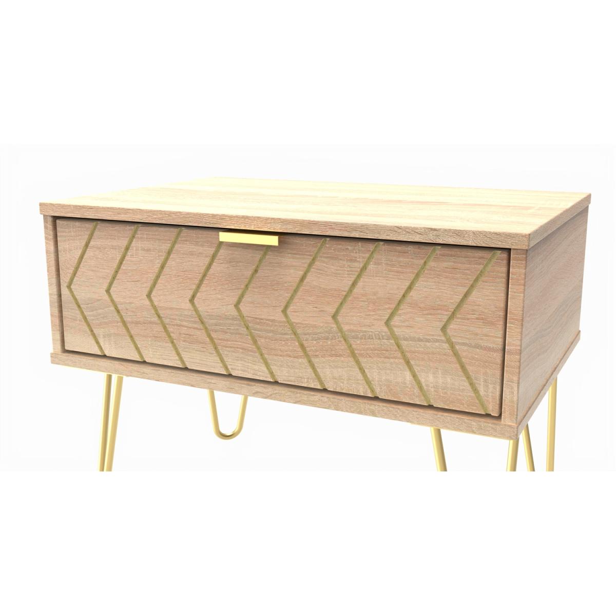 This single drawer bedside cabinet is wider than normal for added practicality. Perfect for any bedside or as a free standing storage unit. The modern, stylish Hong Kong range is available in a range of durable scratch resistant colour or natural wood finishes. With pull handles on all doors and drawers, with gold hairpin metal legs. All drawers come with long lasting metal drawer runners and a linen effect interior. All our furniture is made in the United Kingdom, to the highest quality. It is delivered direct to your location of choice by one of our two man delivery teams, and come full assembled (although legs may be removed to prevent damage in transit).