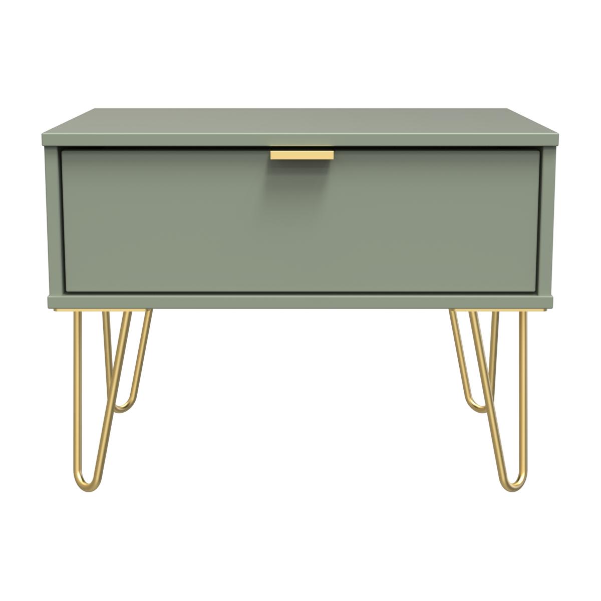 This single drawer bedside cabinet is wider than normal for added practicality. Perfect for any bedside or as a free standing storage unit. The modern, stylish Hong Kong range is available in a range of durable scratch resistant colour or natural wood finishes. With pull handles on all doors and drawers, with gold hairpin metal legs. All drawers come with long lasting metal drawer runners and a linen effect interior. All our furniture is made in the United Kingdom, to the highest quality. It is delivered direct to your location of choice by one of our two man delivery teams, and come full assembled (although legs may be removed to prevent damage in transit).