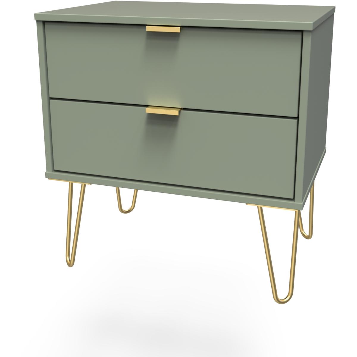 This 2 drawer bedside cabinet is wider than normal for added practicality. Perfect for any bedside or as a free standing storage unit. The modern, stylish Hong Kong range is available in a range of durable scratch resistant colour or natural wood finishes. With pull handles on all doors and drawers, with gold hairpin metal legs. All drawers come with long lasting metal drawer runners and a linen effect interior. All our furniture is made in the United Kingdom, to the highest quality. It is delivered direct to your location of choice by one of our two man delivery teams, and come full assembled (although legs may be removed to prevent damage in transit).
