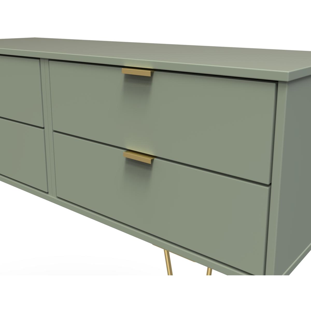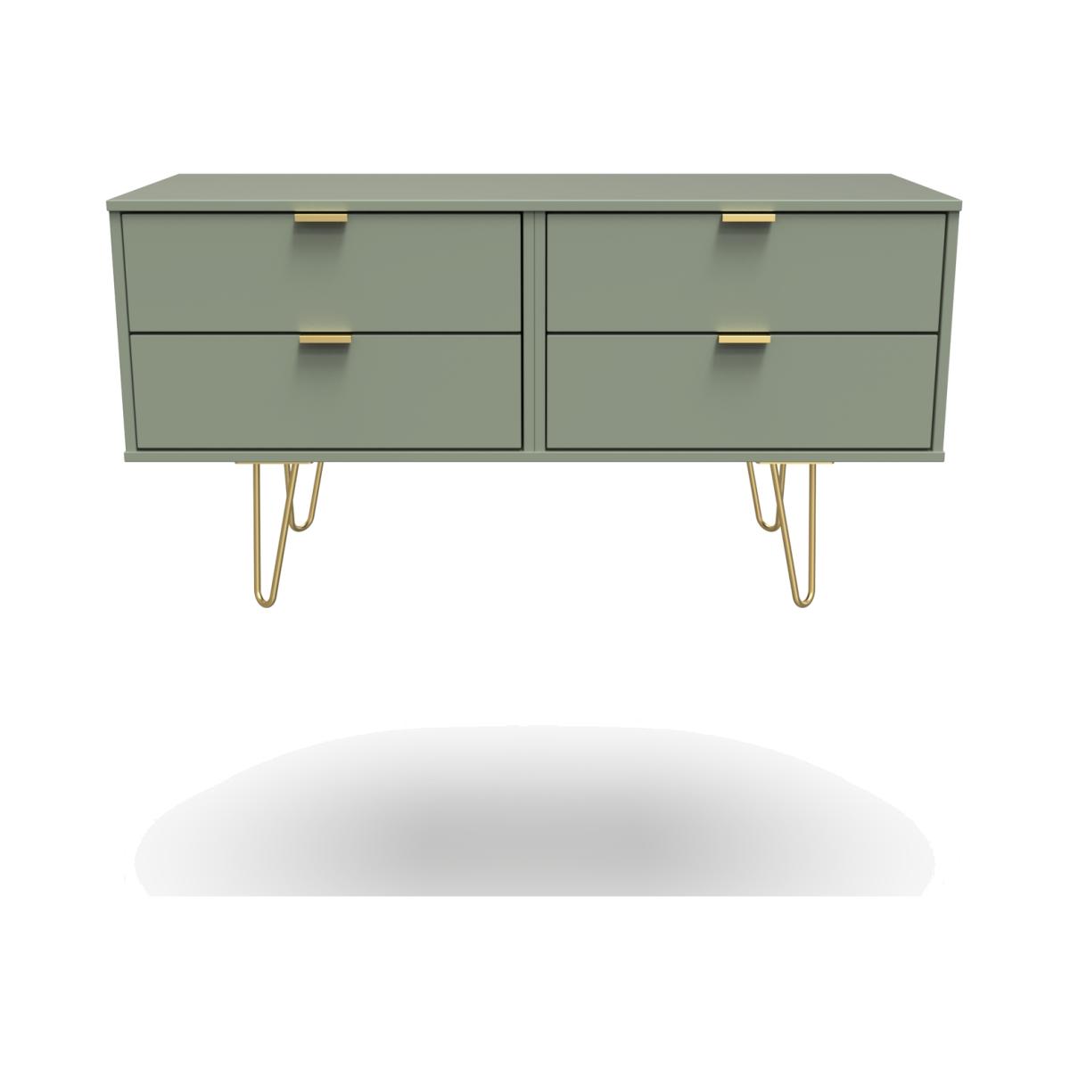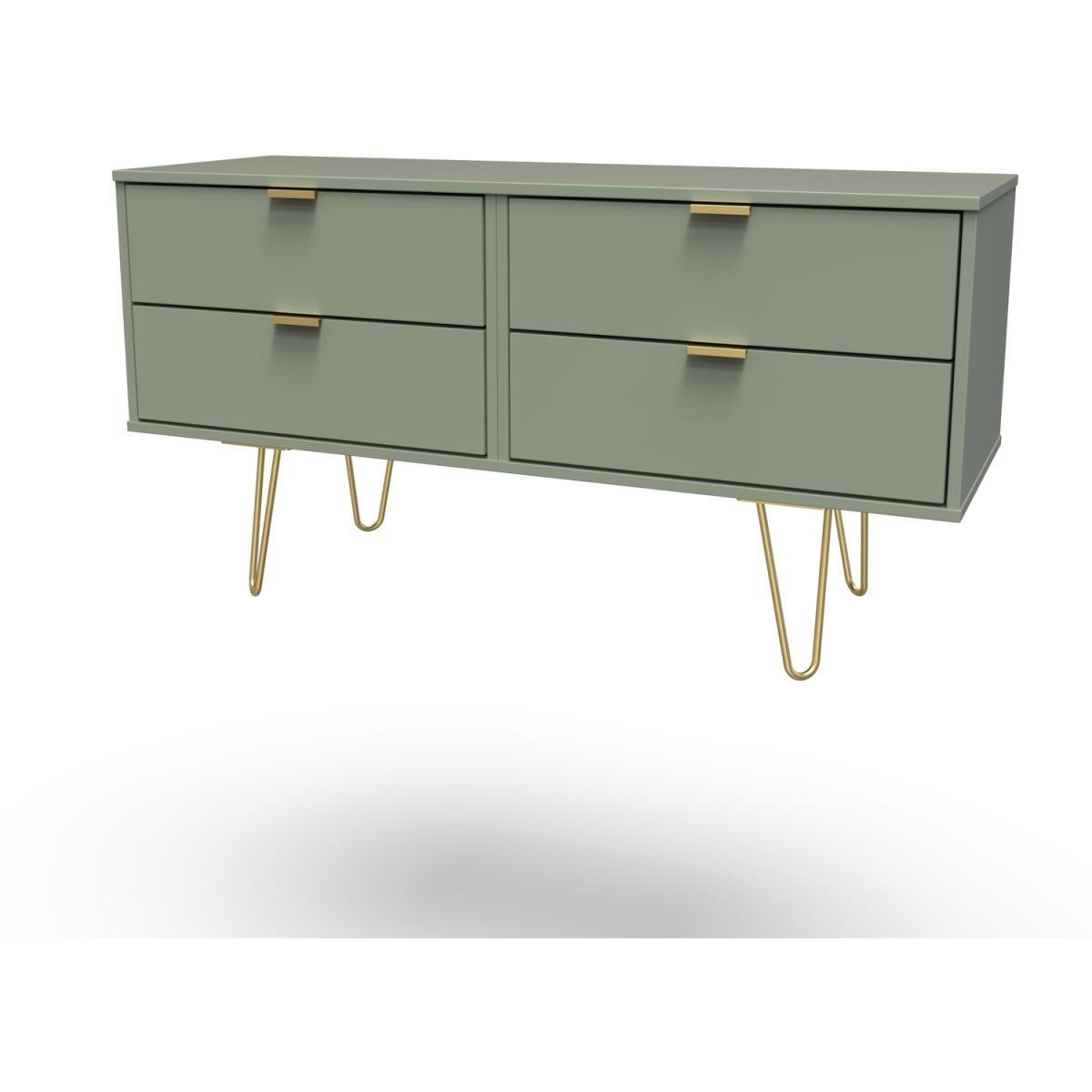 A large 4 drawer bed box. A Perfect storage solution for any room (not just the end of your bed). Could also be used as a low level TVMedia stand. The modern, stylish Hong Kong range is available in a range of durable scratch resistant colour or natural wood finishes. With pull handles on all doors and drawers, with gold hairpin metal legs. All drawers come with long lasting metal drawer runners and a linen effect interior. All our furniture is made in the United Kingdom, to the highest quality. It is delivered direct to your location of choice by one of our two man delivery teams, and come full assembled (although legs may be removed to prevent damage in transit).