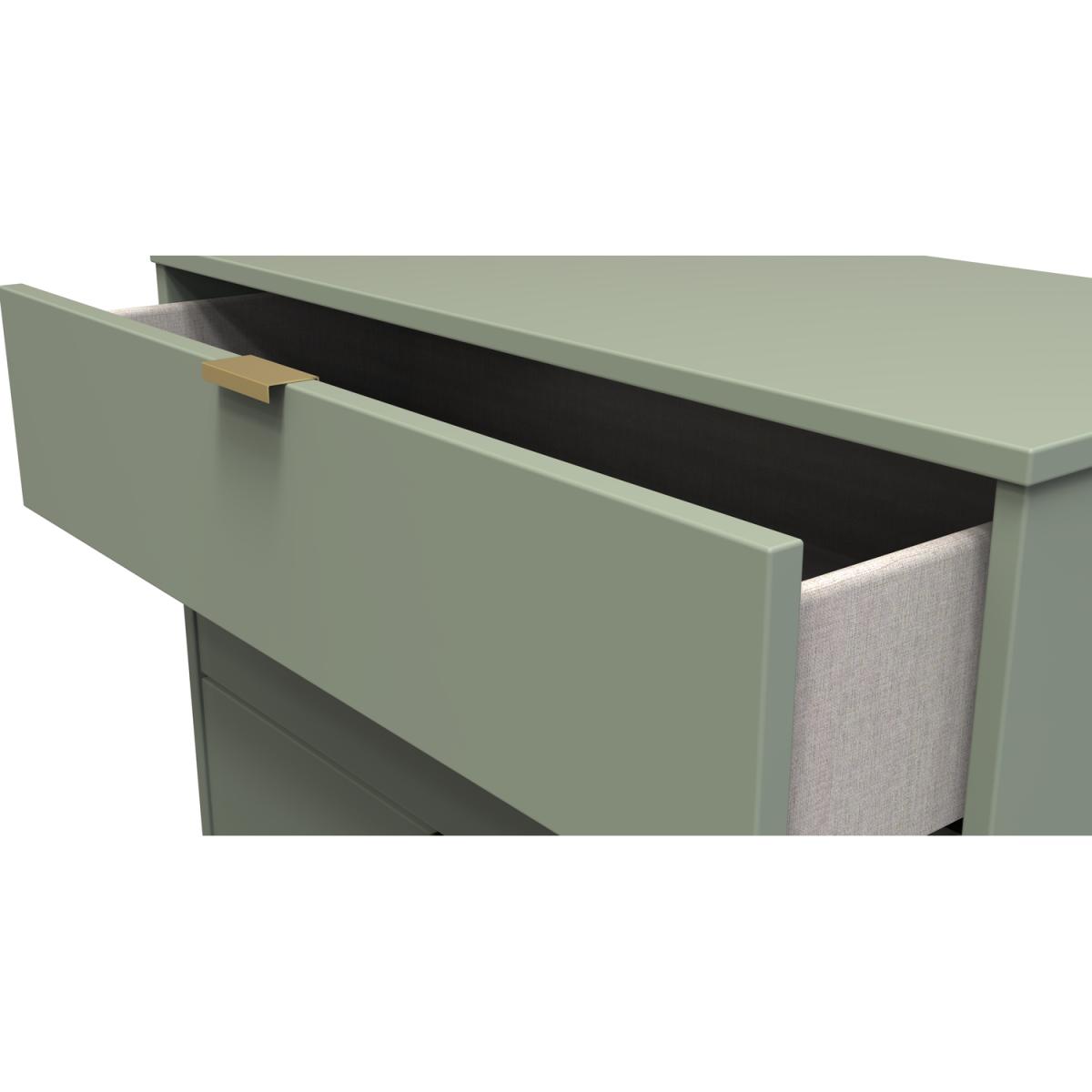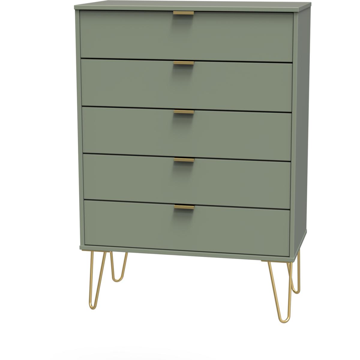 This wide 5 drawer chest of drawers is practical and stylish. Perfect for any home as a free standing storage unit. The modern, stylish Hong Kong range is available in a range of durable scratch resistant colour or natural wood finishes. With pull handles on all doors and drawers, with black sleigh metal legs. All drawers come with long lasting metal drawer runners and a linen effect interior. All our furniture is made in the United Kingdom, to the highest quality. It is delivered direct to your location of choice by one of our two man delivery teams, and come full assembled (although legs may be removed to prevent damage in transit).
