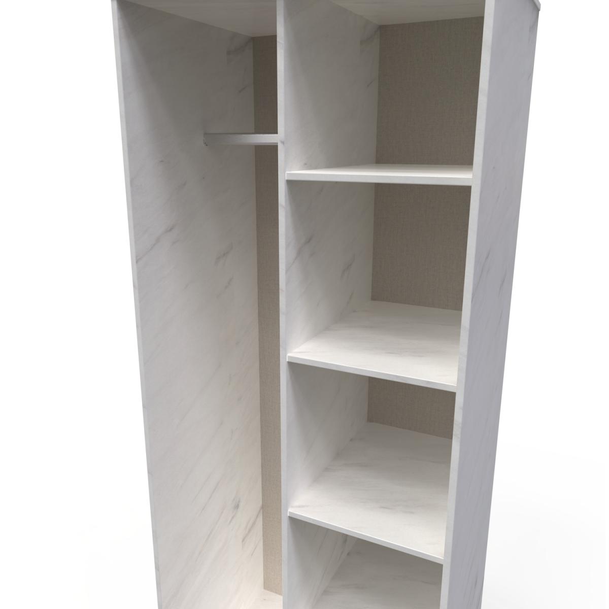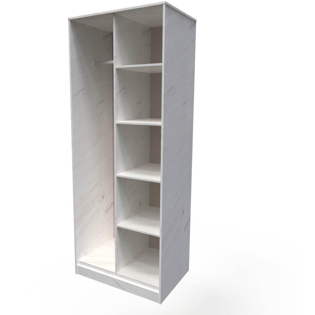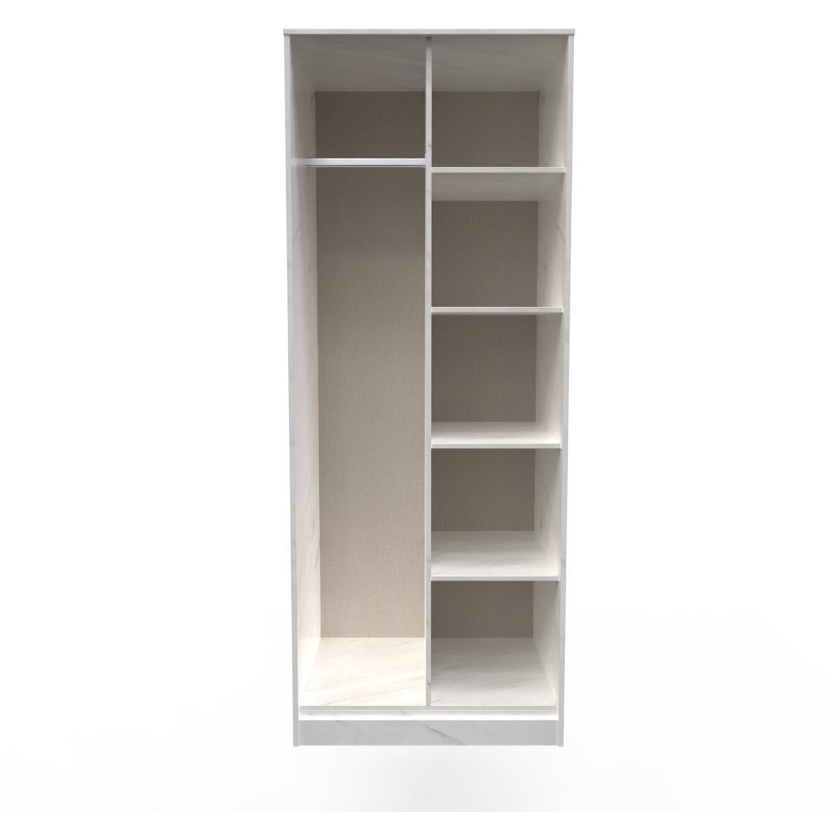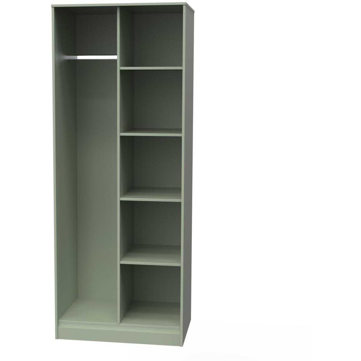 This full height open wardrobe features 5 storage shelves and a full height clothes hanging compartment. The modern, stylish Hong Kong range is available in a range of durable scratch resistant colour or natural wood finishes. With pull handles on all doors and drawers, with gold hairpin metal legs. All drawers come with long lasting metal drawer runners and a linen effect interior. All our furniture is made in the United Kingdom, to the highest quality. It is delivered direct to your location of choice by one of our two man delivery teams, and come full assembled (although legs may be removed to prevent damage in transit).