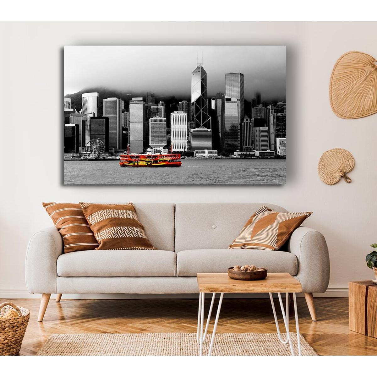 I love this piece because it brings a vibrant splash of colour to an otherwise monochrome cityscape, making it a real statement in any room. The Hong Kong River Boat print works particularly well in modern or industrial interiors, where bold artwork can soften the aesthetics and add visual interest. Practical styling tips include pairing it with minimalist furniture to let the art stand out, or placing it above a simple console table with understated accessories to draw the eye. Its sizeable scale makes it ideal for larger walls in living rooms or open plan spaces, creating a focal point that offers both colour and a cultural touch.