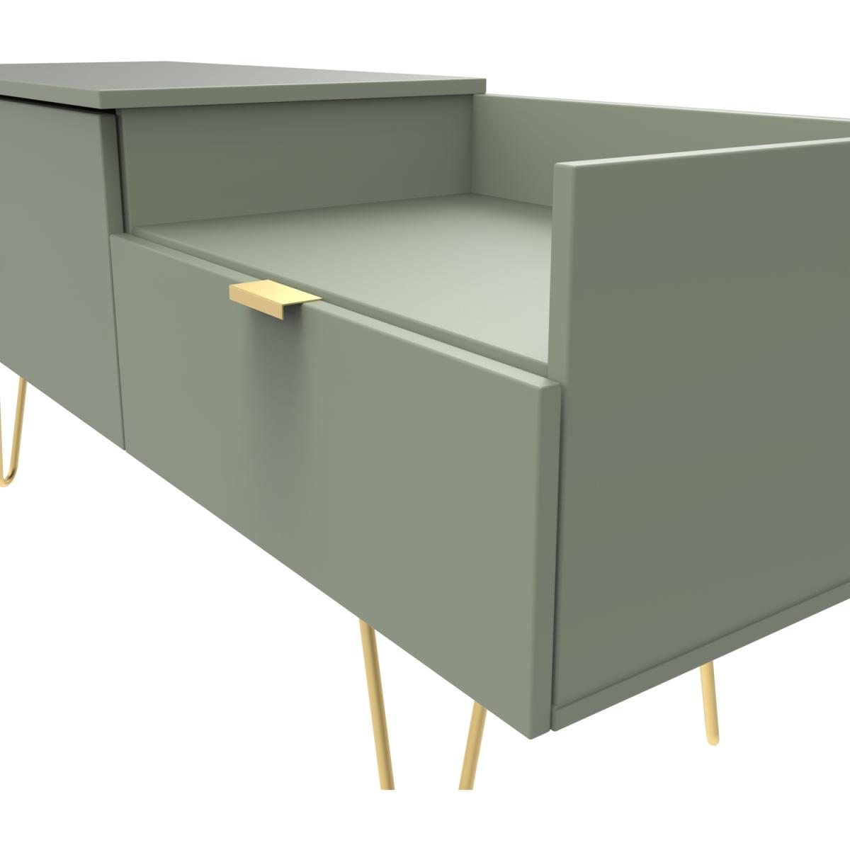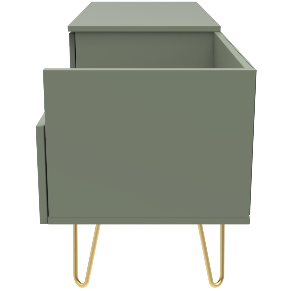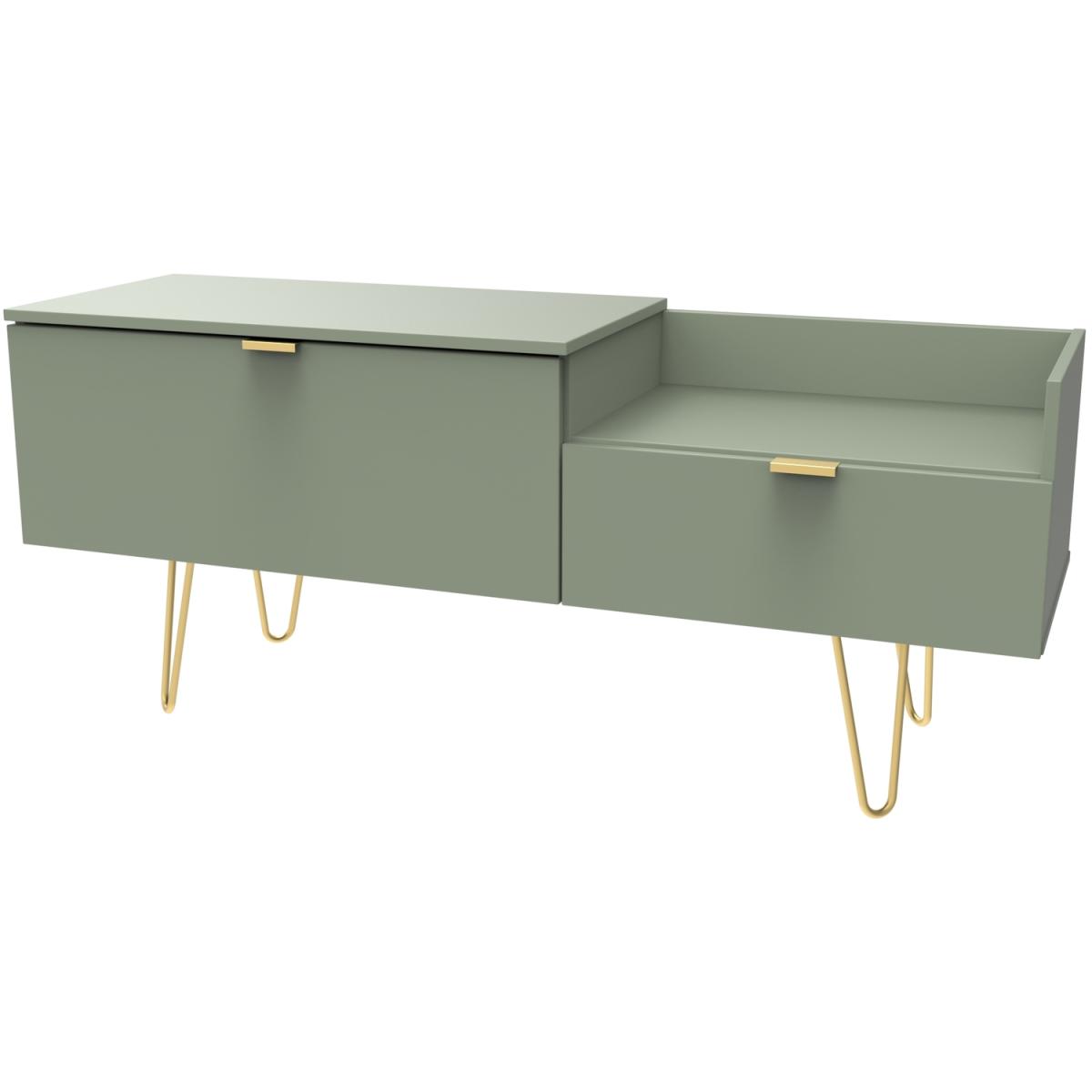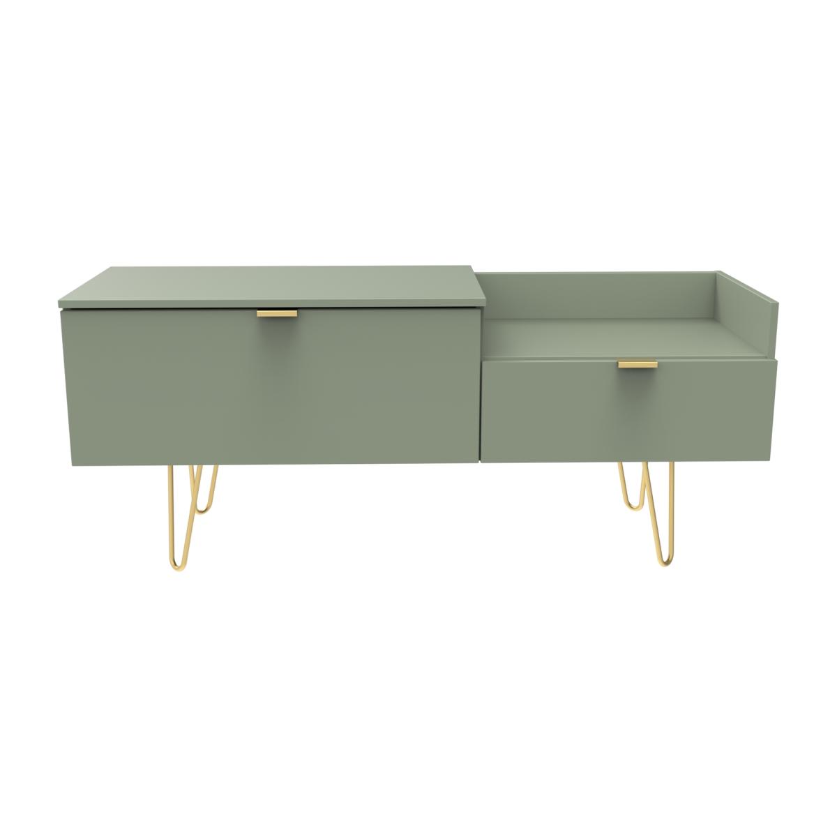 This modern Console unit features a top surface with 2 different levels as well as 2 storage drawers of different depths. The modern, stylish Hong Kong range is available in a range of durable scratch resistant colour or natural wood finishes. With pull handles on all doors and drawers, with gold hairpin metal legs. All drawers come with long lasting metal drawer runners and a linen effect interior. All our furniture is made in the United Kingdom, to the highest quality. It is delivered direct to your location of choice by one of our two man delivery teams, and come full assembled (although legs may be removed to prevent damage in transit).