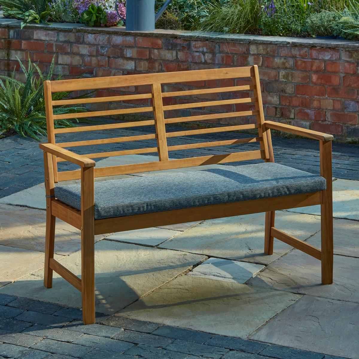 This stunning Honolulu 5-piece garden dining set consists of 1 table, 2 benches, and 2 chairs and will become the focal point of your garden or patio. This durable set is beautifully crafted from acacia wood, which makes it sturdy and easy to clean. The table comes with a central cut-out for a parasol. The chairs and benches have upholstered seat pads for additional comfort. Made from responsibly sourced, FSC-certified acacia. By choosing this product, you are supporting responsible management of the world’s forests. Please note: Parasols are sold separately.