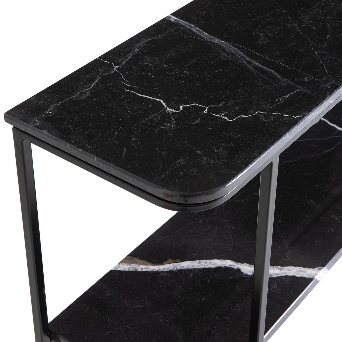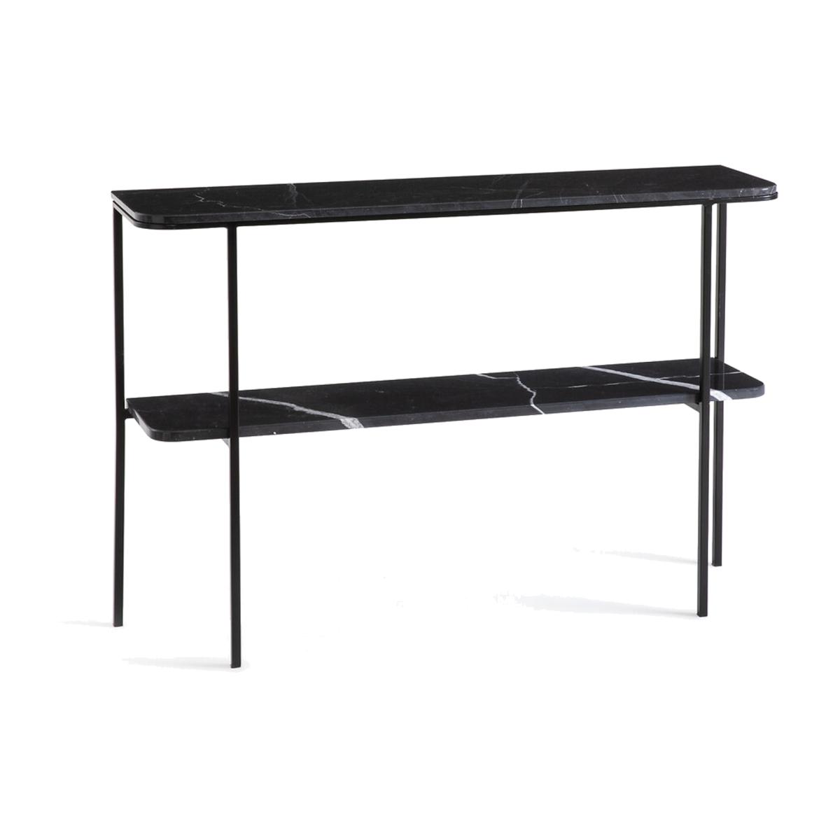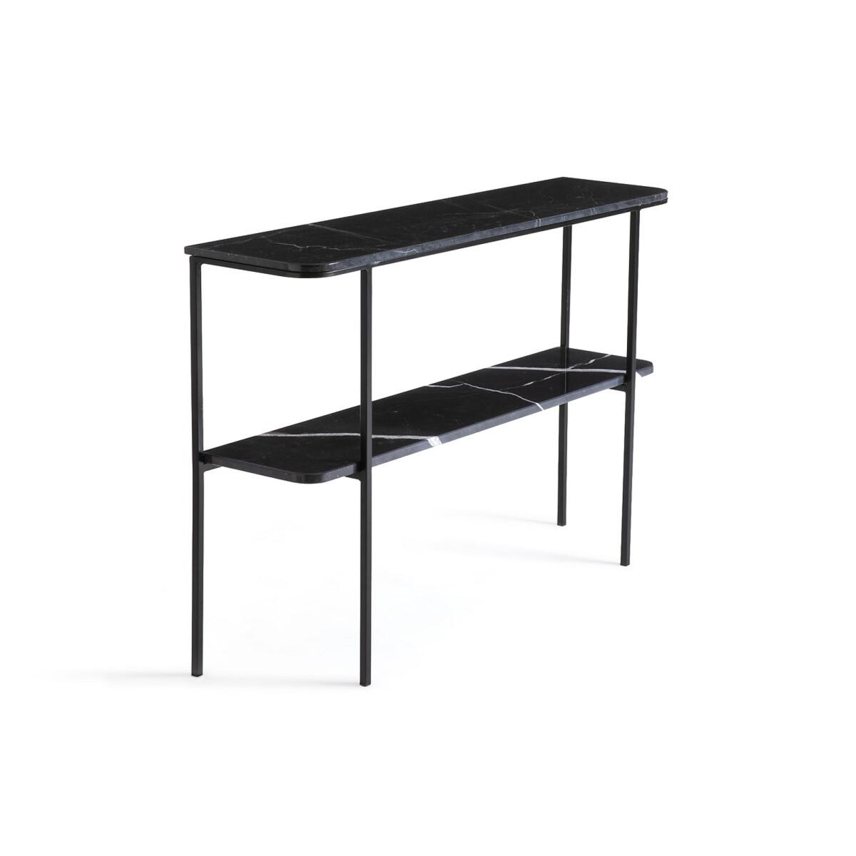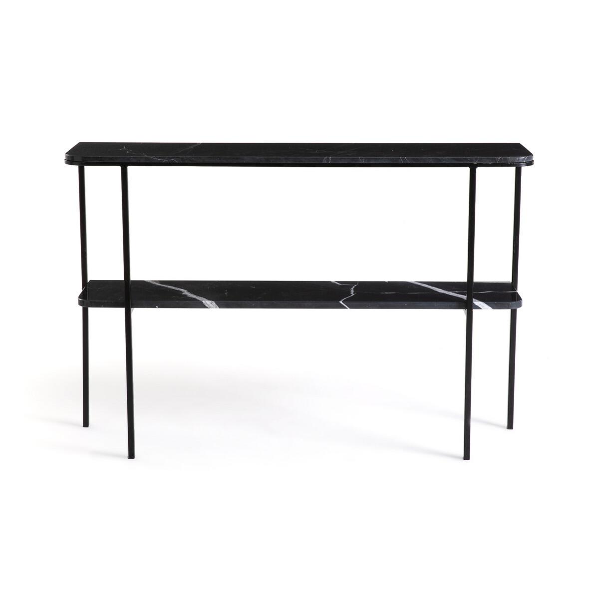 I love the Honorianne console because of its sleek, minimalist design and the striking contrast of black marble with slim metal legs, making it versatile across various interiors. It works particularly well in Entryways, living rooms, or even as a sophisticated sideboard in dining areas. For styling, consider using it to display curated decorative objects like vases, art books, or small sculptures. Add warmth with a textured runner or tray to soften the marble’s cool finish, and balance the look by pairing it with upholstered seating or lush greenery nearby. Its elegant yet understated aesthetic ensures it complements both contemporary and classic interiors seamlessly.