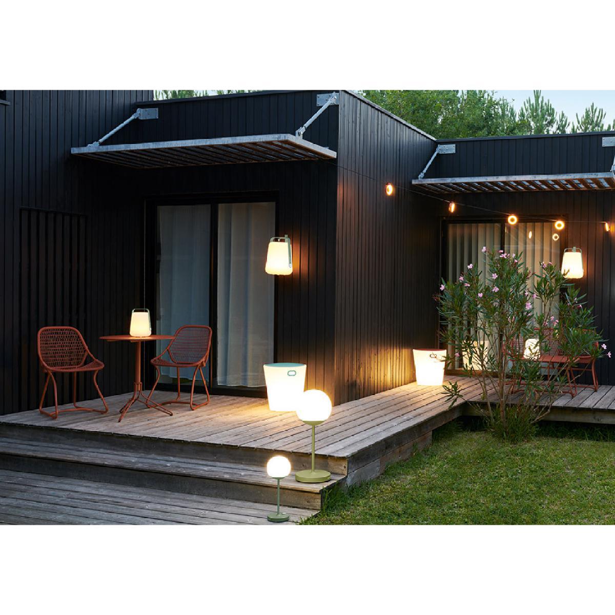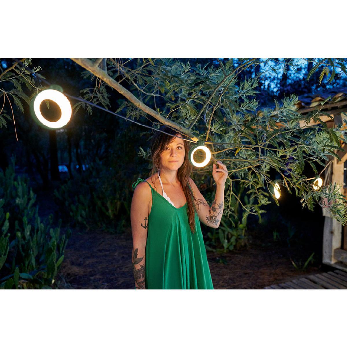 Innovative design, lighting power and durability: the light garland from Fermobwill brighten your summers! Very decorative, the Hoop garland will instil a bohemian and warm ambiance into your summer evenings by creating a mood light on your terrace, in your garden or in your lounge. It is made up of 8 ABS light rings, available in fresh and trendy colours. These clever rings are adjustable (left to right). The brightness of the light is variable (from 0 to 100%). The Hoop garlandprovides a practical light: its light output (960 lumen) can brighten a table for a dozen people. Its large size lets you brighten large spaces: the Hoop garland measures 12 metres (6 metres + 6 metres extension to make mains power supply connection easier). During the day and at night, it will beautify your outdoor spaces, placed on top of a large dining table or a lounge space! You can attach it to a wall, wrap it around a beam or even hang it from the garden trees. It will provide a very charming open air café feel to your meals and parties outdoors. To make using it easier, it is equipped with 2 attachment pieces and an IP67 outdoor power system. Of course, the Fermob quality is not lacking. Very resistant, this garland can be used outdoors and is perfectly waterproof. It is resistant to bad weather and UV rays. The Hoop garland connects to the mains. The light can be controlled in 2 different ways: with the dimmer / switch located on the cable, or remotely via Bluetooth on a free Fermob lighting app. This app lets you vary the brightness and temperature of the light, create and select moods and control 1 or several lamps.