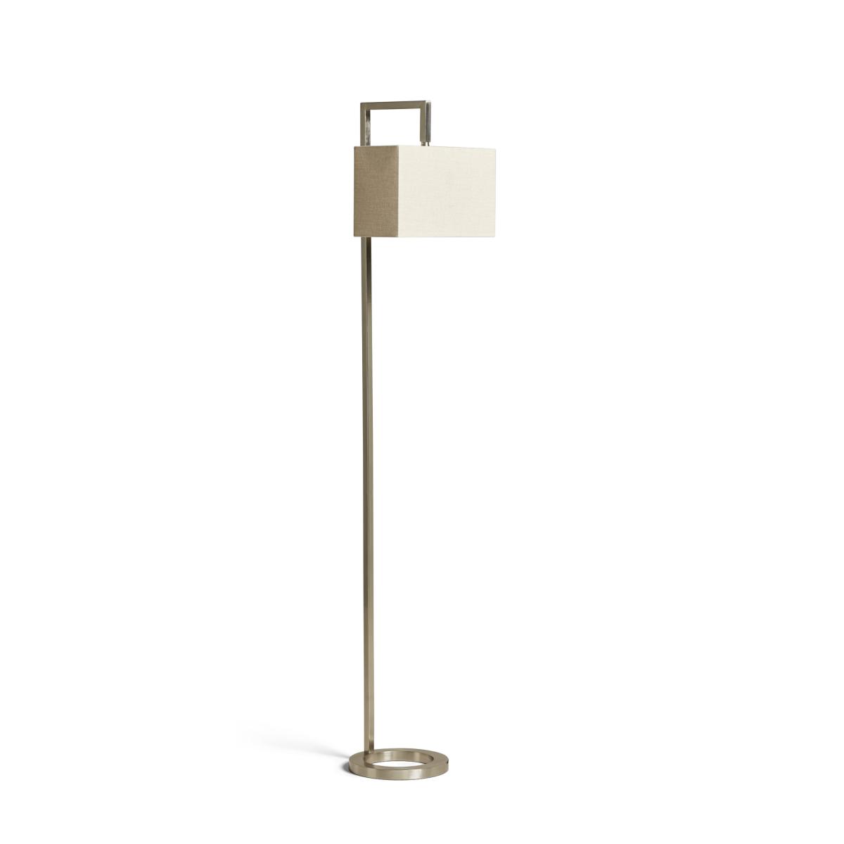 A vintage-style, handmade floor lamp in a nickel finish, with an unusual angled top where the bulb is focused down rather than upwards. The Hooper Lamp's simple design and timeless finish make it a great addition to a home office or smart sitting room.