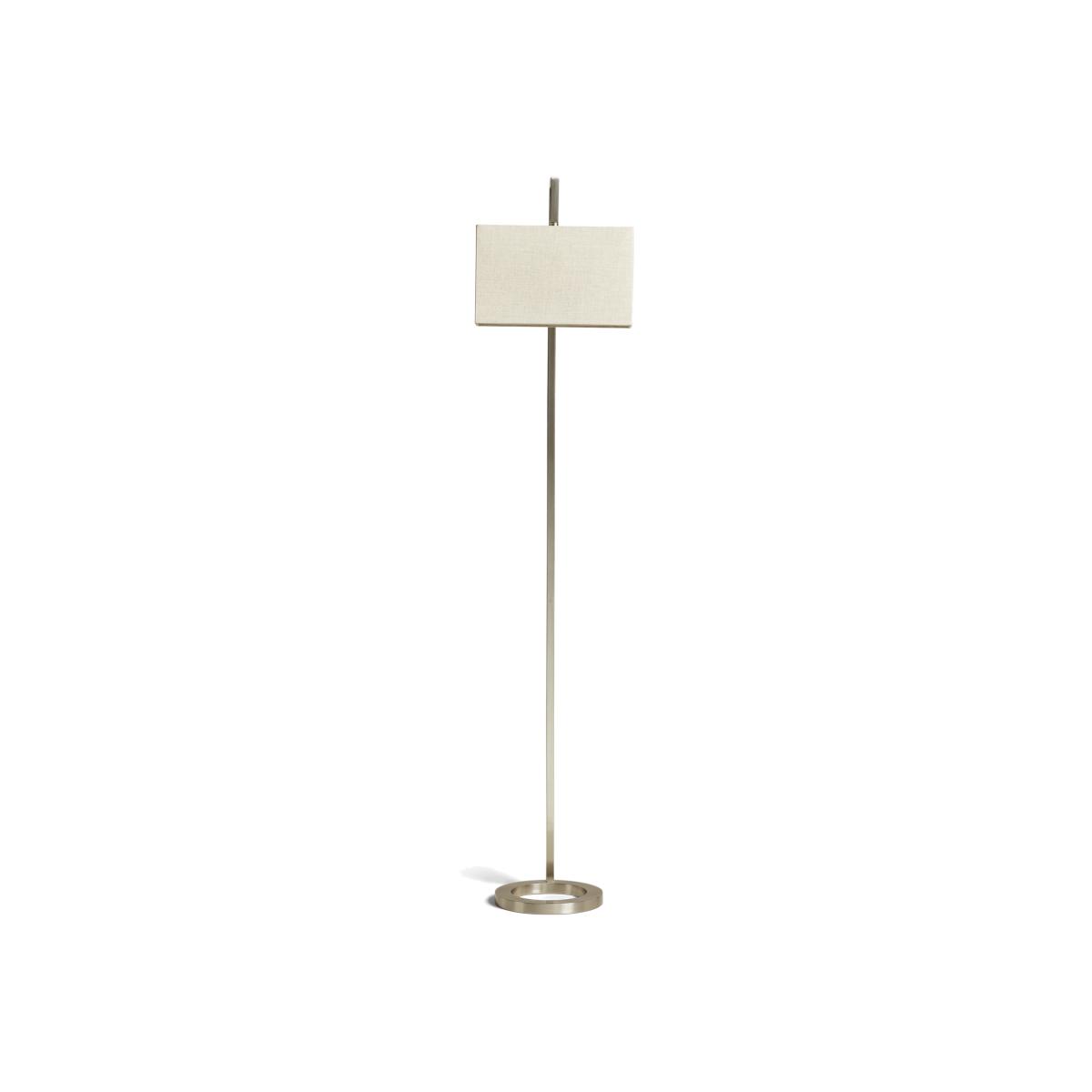I love this nickel floor lamp for its clean, modern silhouette that lends itself well to a variety of interiors, from contemporary to minimalist schemes. Its subtle finish adds a touch of sophistication without overpowering other decor elements. The lamp works particularly well in living rooms, reading nooks, or home offices where a sleek, functional light source is needed. For styling tips, try pairing it with a textured rug and layered lighting to create interest and warmth. It’s versatile enough to stand alone as a statement piece or to complement a carefully curated collection of furnishings in a neutral or monochromatic palette.