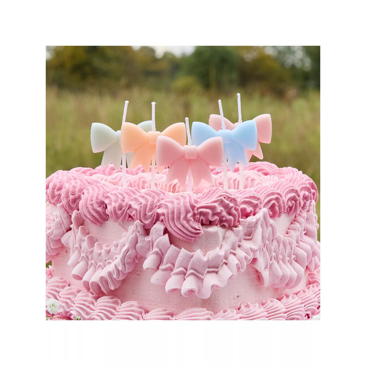 Make your celebration cake even sweeter with these adorable pastel bow candles.