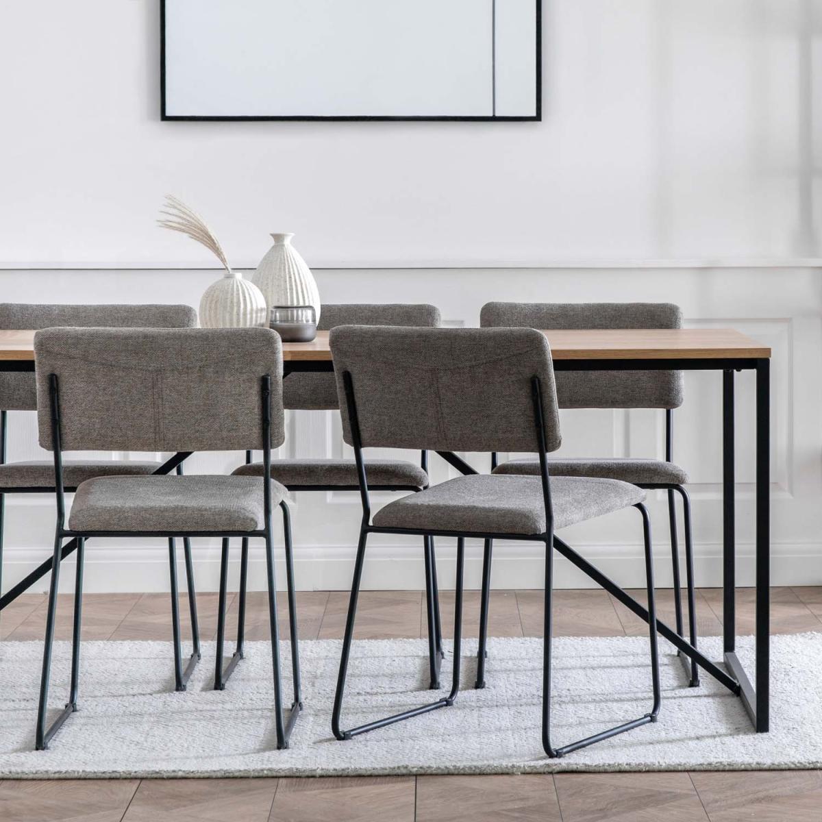 The Hope Dining Table is a stunning combination of modern and traditional styles. This dining room staple brings a natural oak veneer top to a matt black metal base and clean sharp lines for a crisp contemporary take on a classic furniture design.