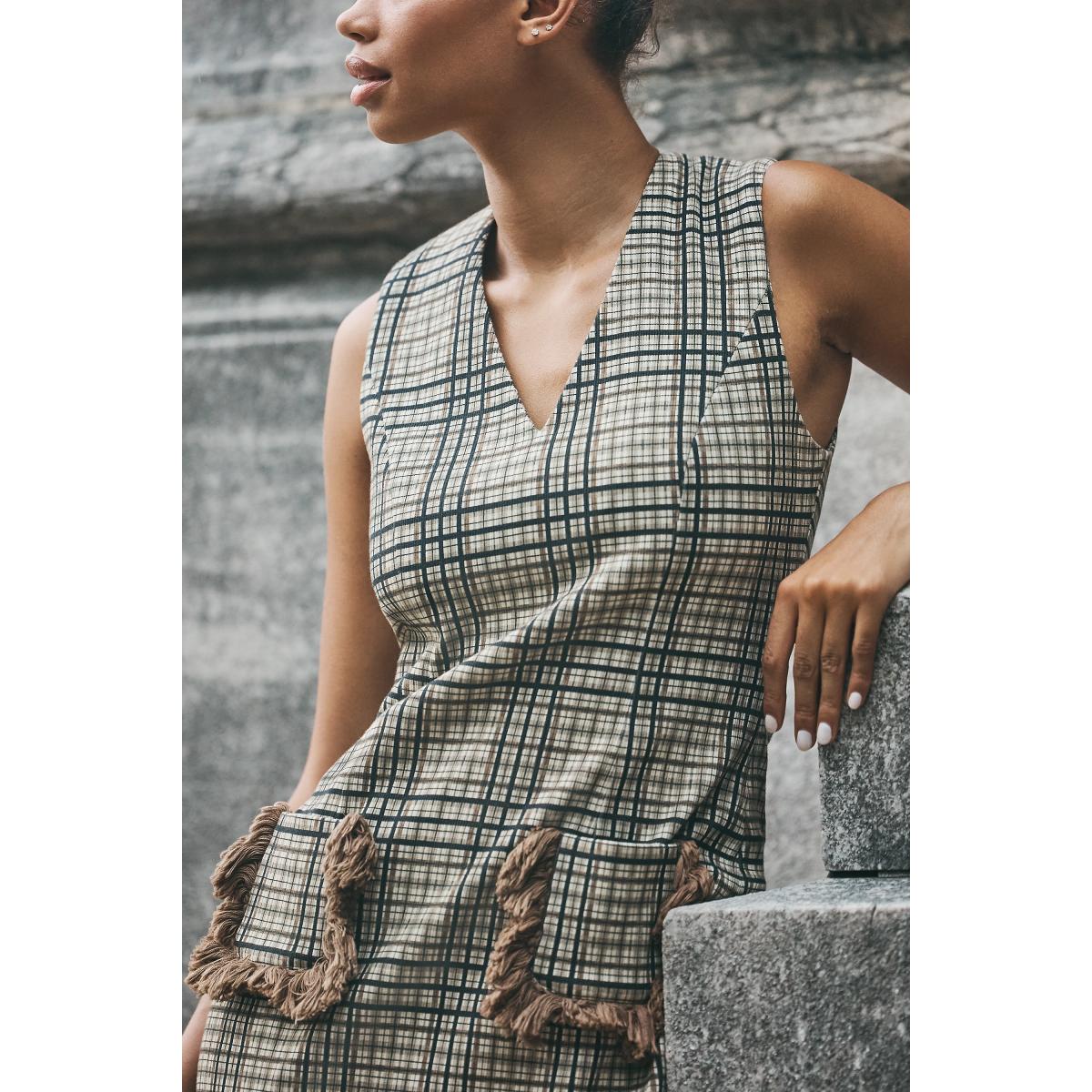 This shift dress is crafted from a cotton blend with a V-neckline, fringed patch pockets, and a fringed hem. * By Hope for Flowers by Tracy Reese * 95% Organic Cotton, 5% Spandex * Back zip * Front patch pockets * Fringe detailing at hem and pockets * V-neckline * Dry clean * Imported