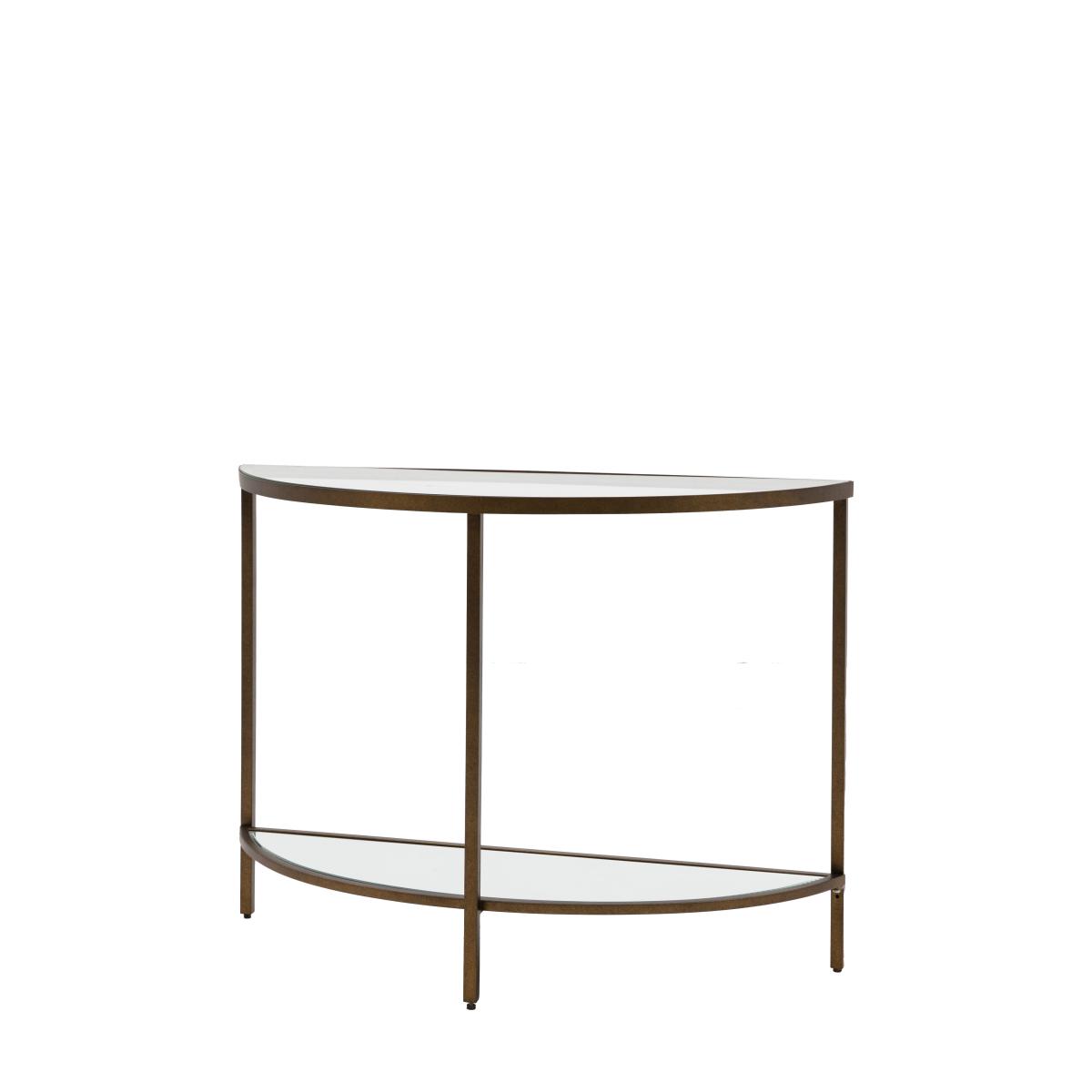 Glamorous and eye catching, the Demi Lune shaped Console Table is perfect for hallways, living rooms and bedrooms alike. The tempered glass top shelf and mirror glass bottom shelf in a stylish metal frame will add a touch of luxury to any room.