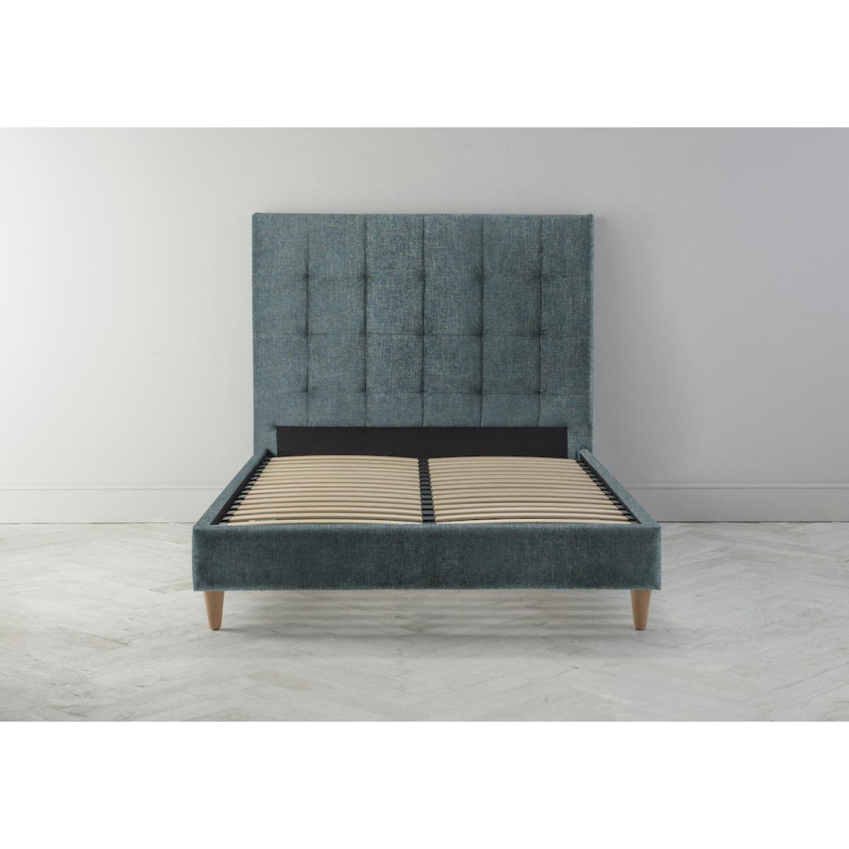 Bellini Wide Curved Winged Upholstered Soft Velvet Bed Frame - Blue / King