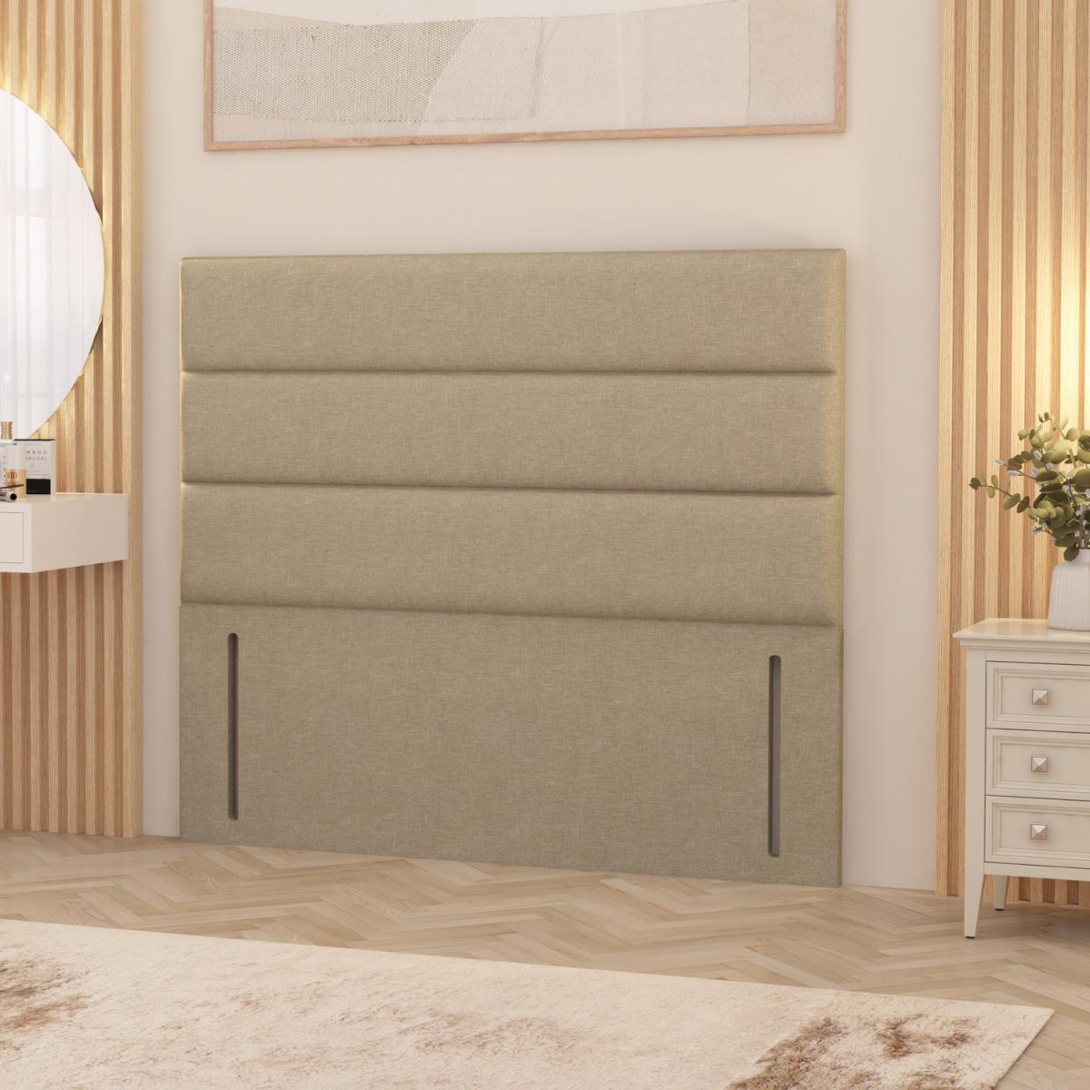 The Horizona Linen Fabric Floor Standing Headboard is the definition of refined luxury and contemporary craftsmanship. Upholstered in premium Linen Fabric, it features intricate deep-padded horizontal panels for a sophisticated, tailored finish. At 54 tall, this floor standing headboard creates a striking focal point, offering both visual grandeur and superior back support for reading or relaxing in bed. Expertly handcrafted in the UK, the Horizona combines durability with elegance, perfectly complementing both modern and classic interiors. Designed to pair seamlessly with all standard UK divan bases. Headboard height from the floor is 54" 137cm, the front panel of the headboard is 32" 81cm. This headboard can be fitted into your existing base with screws or simply placed behind your bed and against the wall.