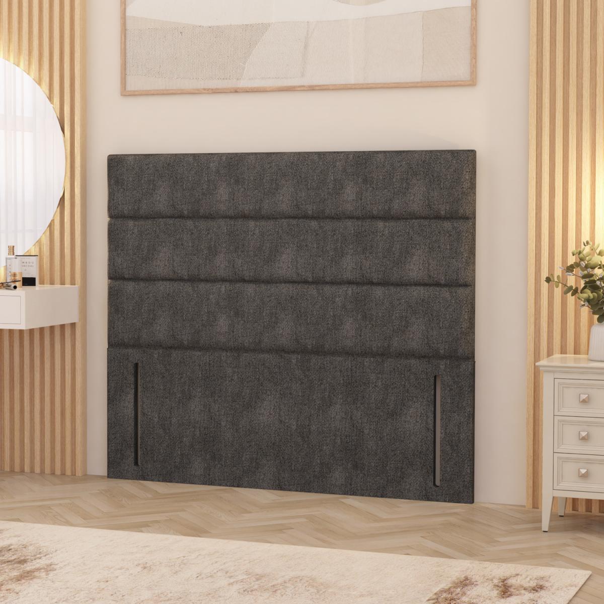 The Horizona Tweed Fabric Floor Standing Headboard is the definition of refined luxury and contemporary craftsmanship. Upholstered in premium Tweed Fabric, it features intricate deep-padded horizontal panels for a sophisticated, tailored finish. At 54 tall, this floor standing headboard creates a striking focal point, offering both visual grandeur and superior back support for reading or relaxing in bed. Expertly handcrafted in the UK, the Horizona combines durability with elegance, perfectly complementing both modern and classic interiors. Designed to pair seamlessly with all standard UK divan bases. Headboard height from the floor is 54" 137cm, the front panel of the headboard is 32" 81cm. This headboard can be fitted into your existing base with screws or simply placed behind your bed and against the wall.
