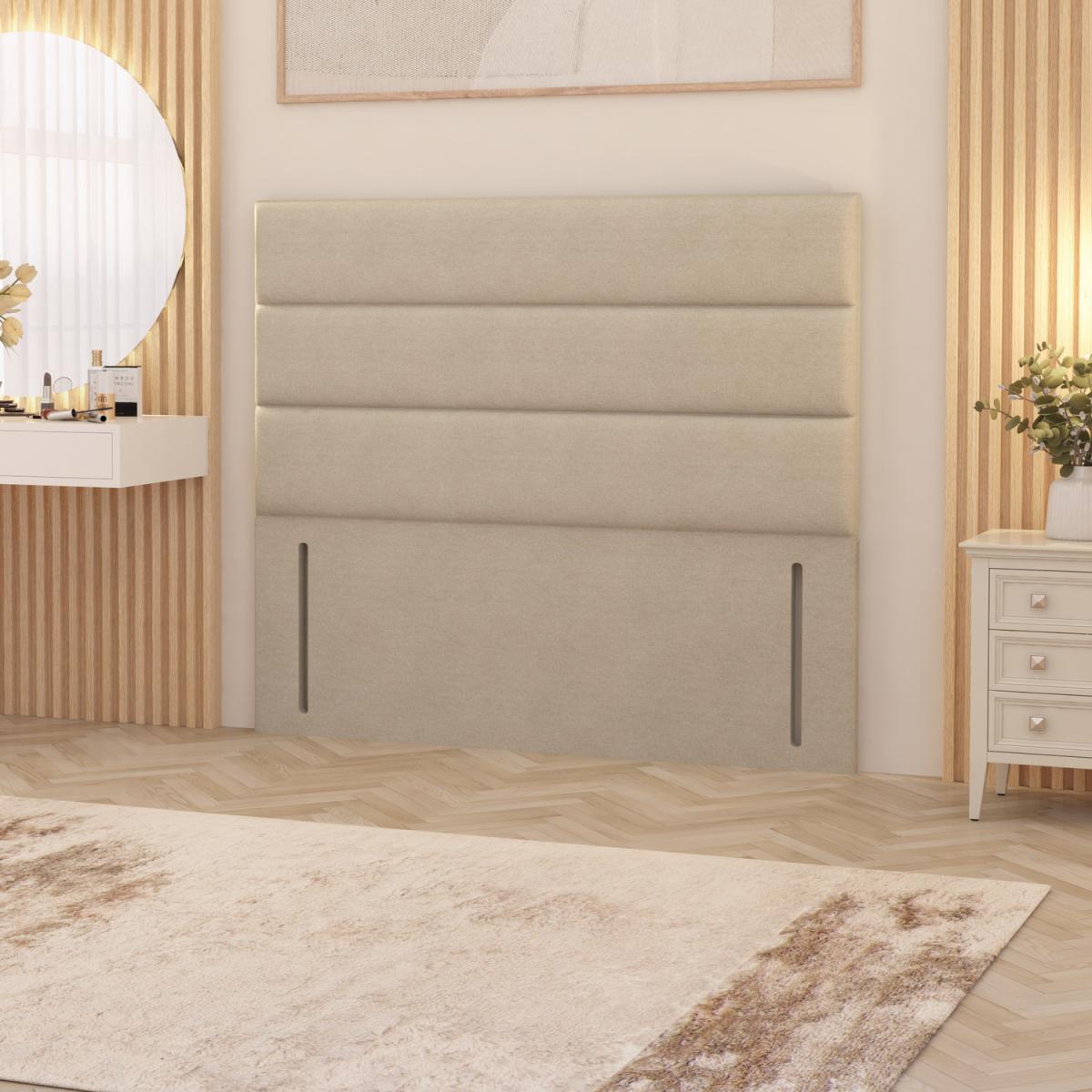 The Horizona Tweed Fabric Floor Standing Headboard is the definition of refined luxury and contemporary craftsmanship. Upholstered in premium Tweed Fabric, it features intricate deep-padded horizontal panels for a sophisticated, tailored finish. At 54 tall, this floor standing headboard creates a striking focal point, offering both visual grandeur and superior back support for reading or relaxing in bed. Expertly handcrafted in the UK, the Horizona combines durability with elegance, perfectly complementing both modern and classic interiors. Designed to pair seamlessly with all standard UK divan bases. Headboard height from the floor is 54" 137cm, the front panel of the headboard is 32" 81cm. This headboard can be fitted into your existing base with screws or simply placed behind your bed and against the wall.