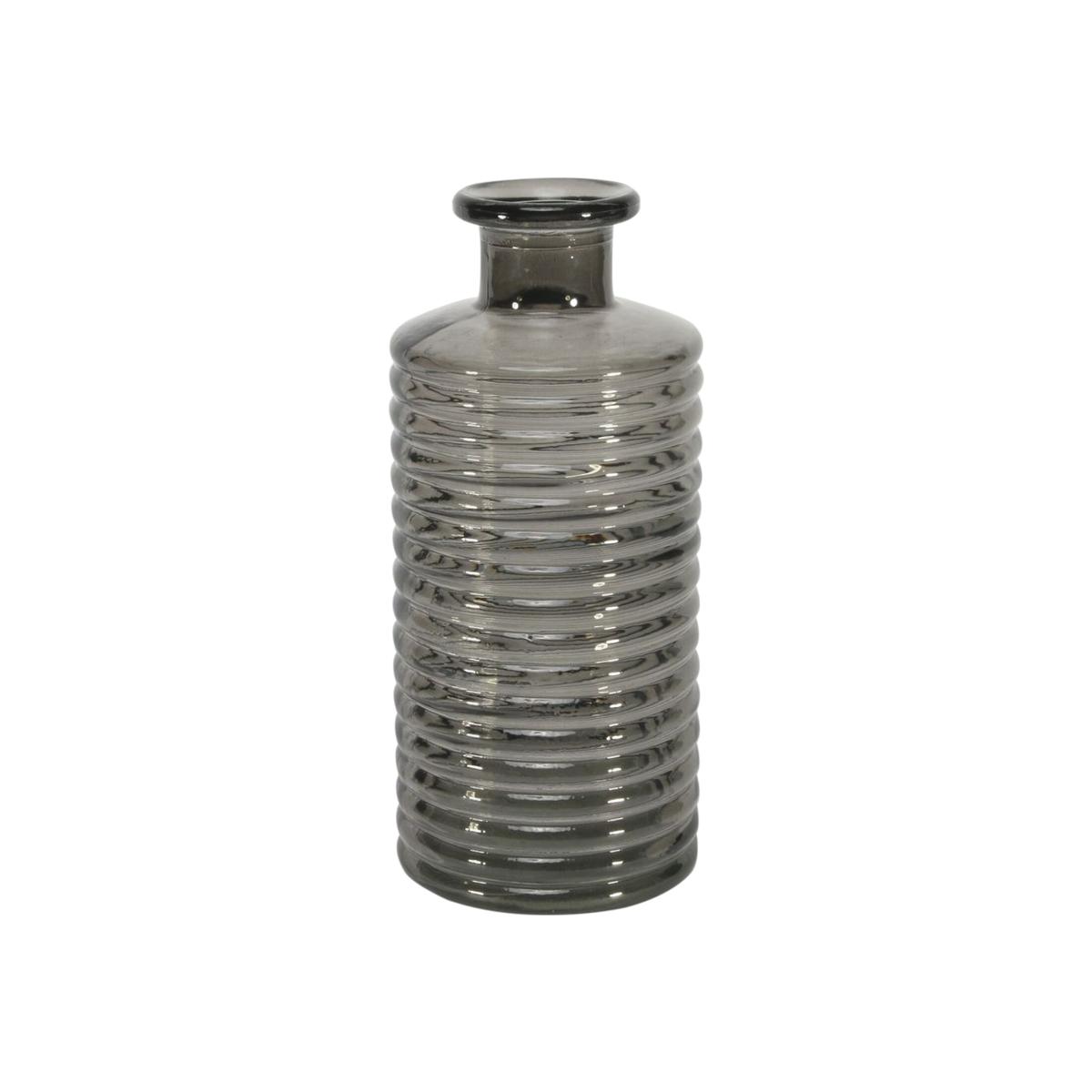 Horizontal Ribbed Glass Bottle Vase - Dove Grey