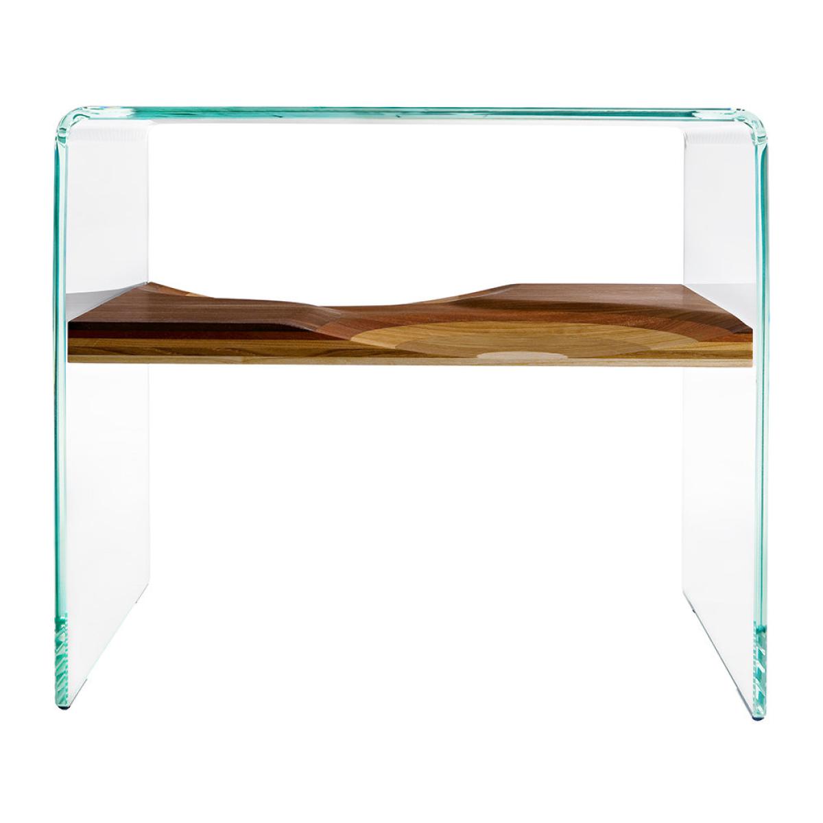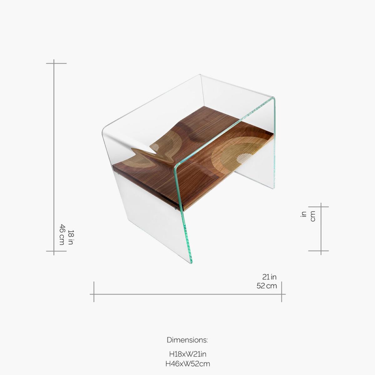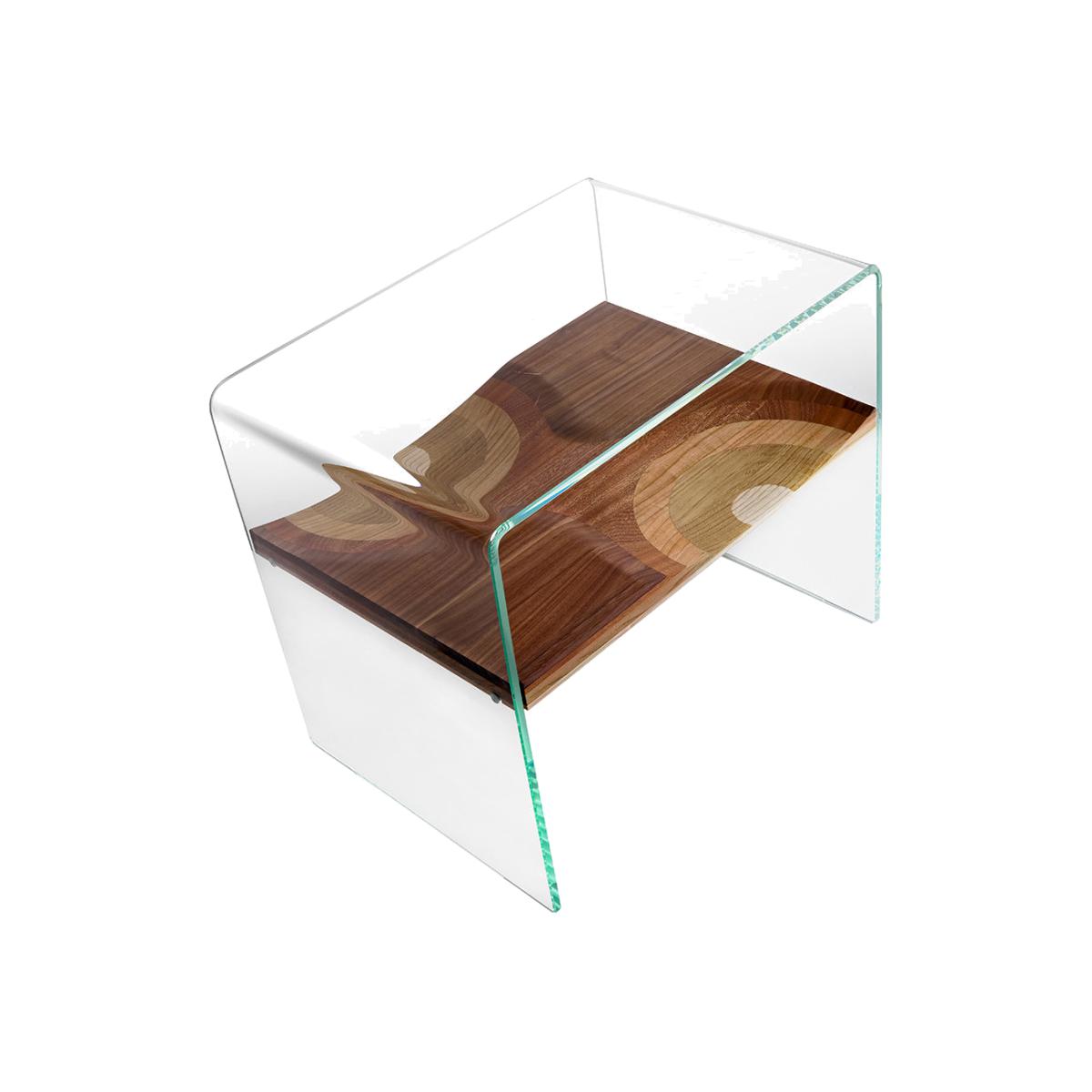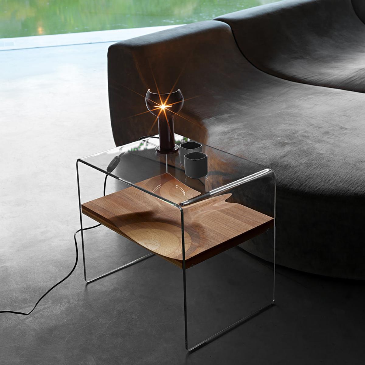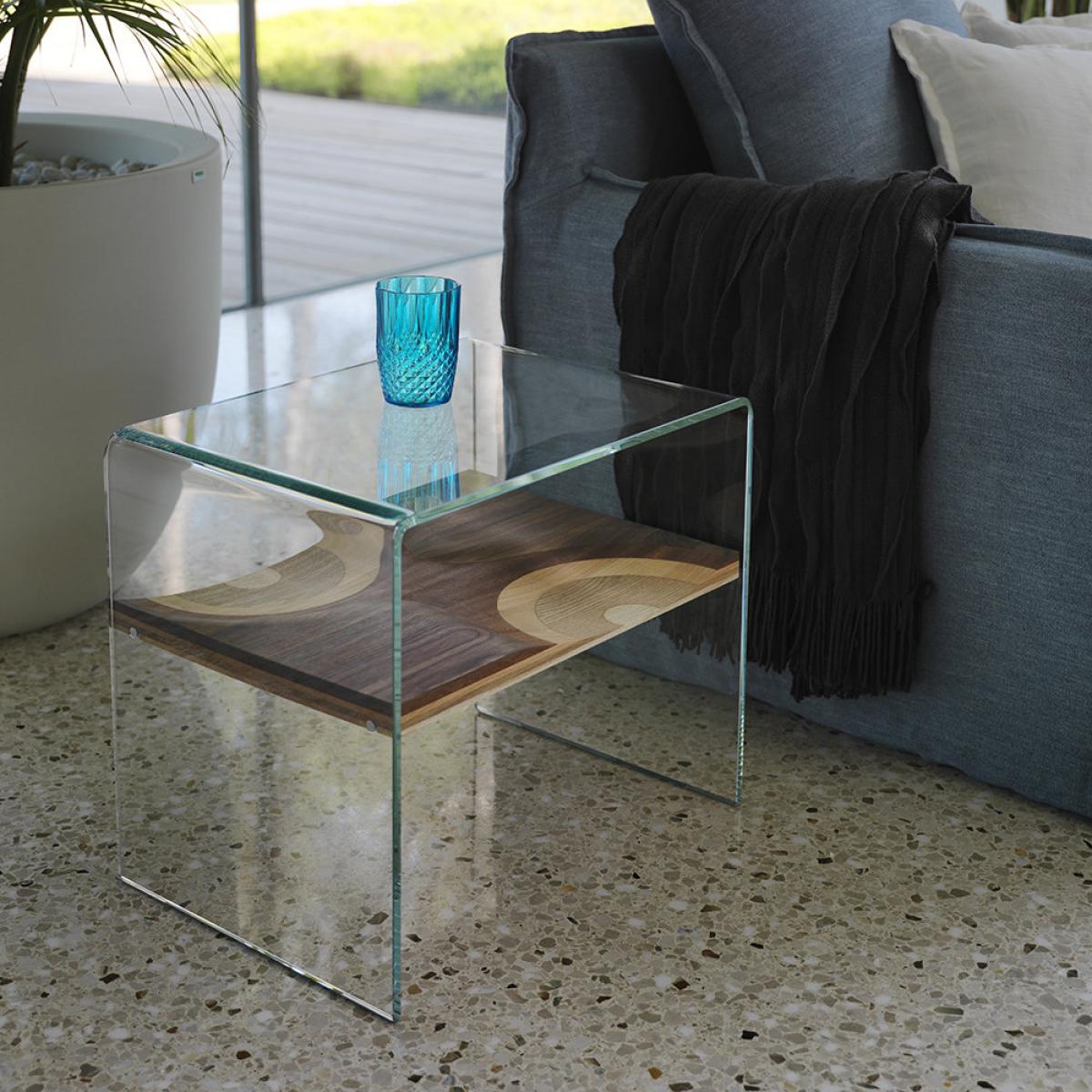Add statement design to any room of the home with this Bifronte side table from Horm & Casamania. Designed in homage to Toyo Ito, this side table features a curved clear glass frame and a shelf that has been crafted from walnut, mahogany, cherry, oak and ash wood. This practical side table can be turned into a bedside table when paired with the complementing Bifronte storage box available separately from Horm & Casamania.