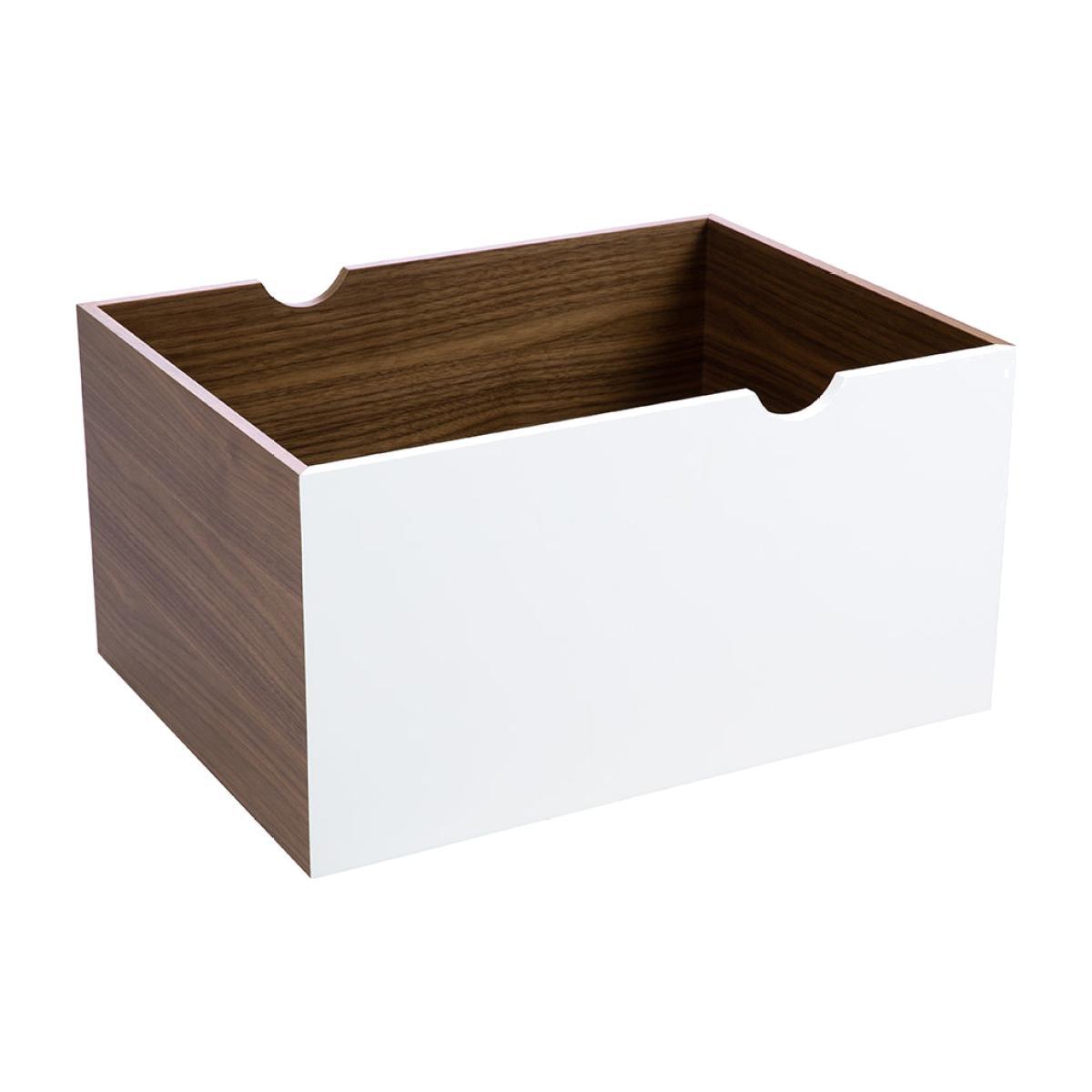 I love this storage box for its clean, modern design and versatile colour combo, making it easy to incorporate into various interiors. It works particularly well in minimalist, Scandinavian, or contemporary schemes where functionality meets form. Practical styling tips include using it to organise everything from magazines and office supplies in a workspace to small toys or accessories in a living room or bedroom. Its neutral tones allow it to blend seamlessly with different palettes while the clever cut-out detail makes for easier handling and stacking. This box is ideal for keeping spaces tidy without compromising on aesthetic appeal.