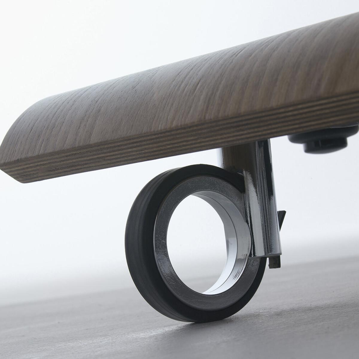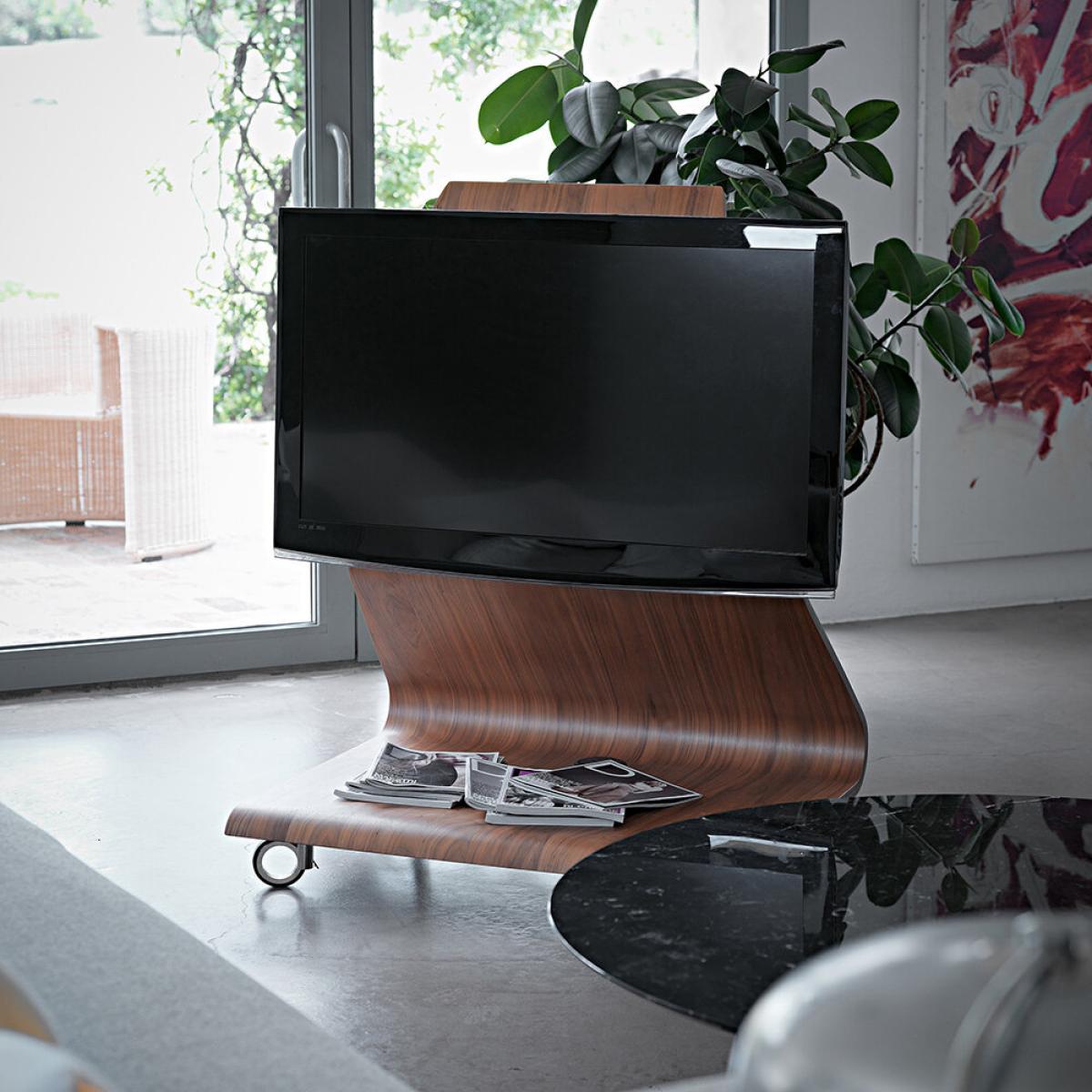 The Cobra from Horm & Casamania is a dynamic television stand. Made from curved plywood and polished entirely by hand, it features bake-fitted wheels and an ambient LED light under the base. Complete with multiple power adapter on the base, it features a discreet cable inlet at the back that’s veneered in wood with the same finish as the structure.