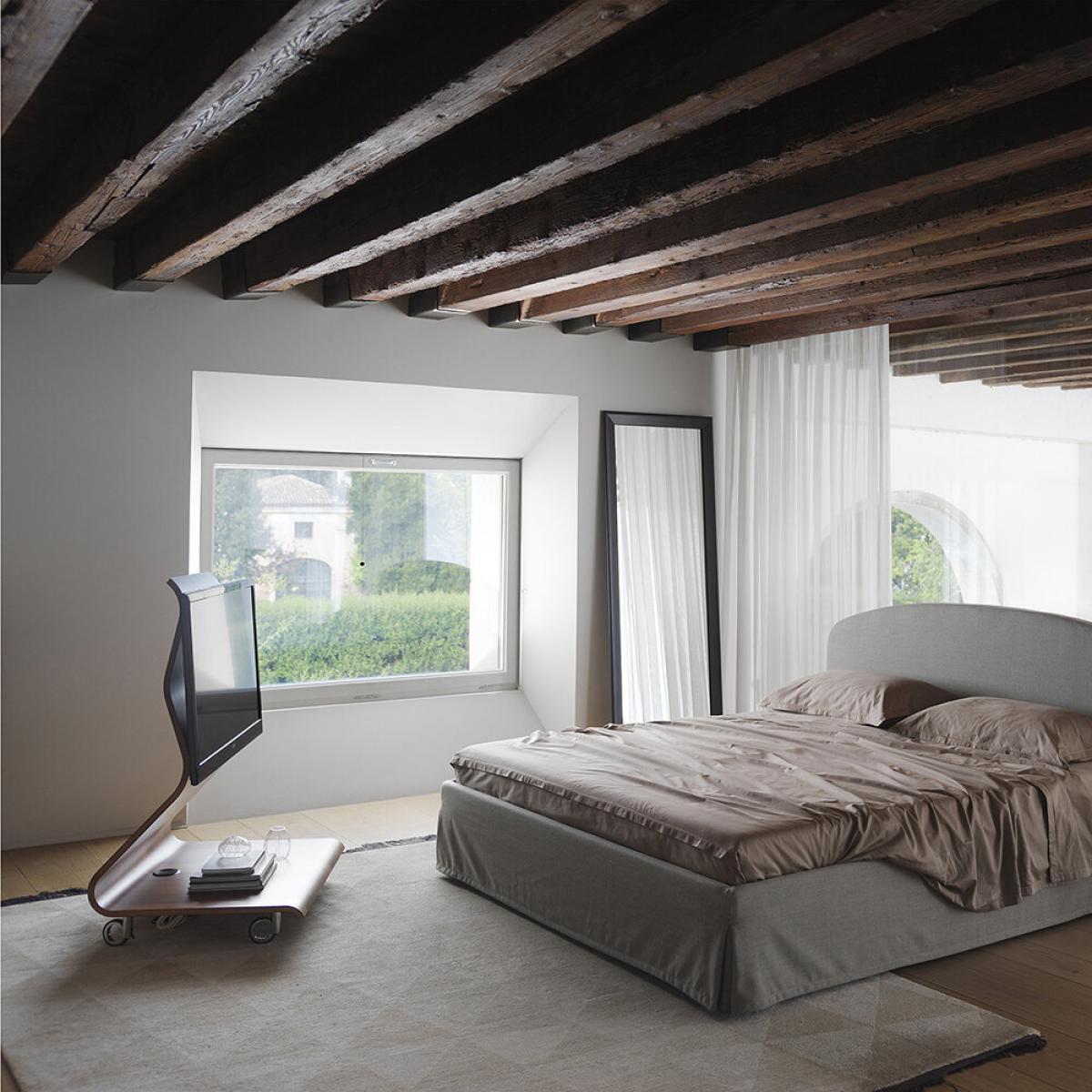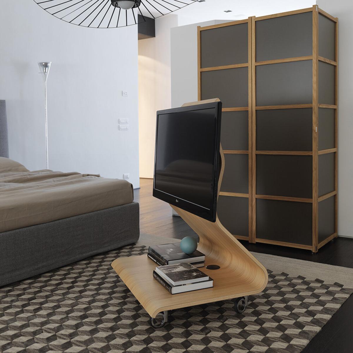 The Cobra from Horm & Casamania is a dynamic television stand. Made from curved plywood and polished entirely by hand, it features bake-fitted wheels and an ambient LED light under the base. Complete with multiple power adapter on the base, it features a discreet cable inlet at the back that’s veneered in wood with the same finish as the structure.