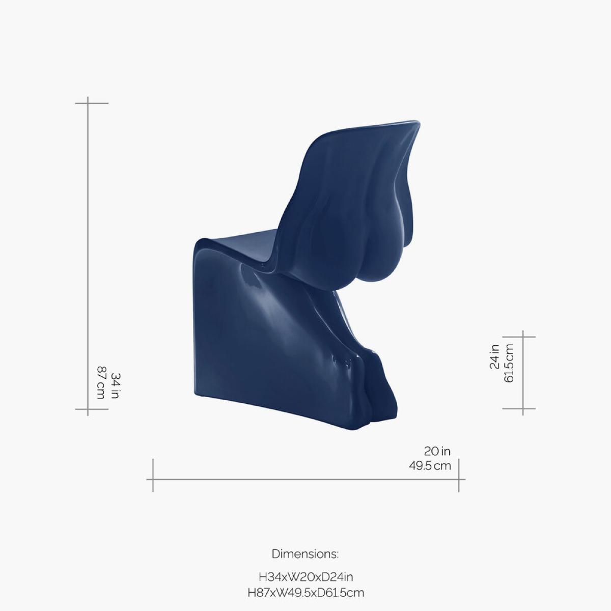 I love this chair for its bold, sculptural silhouette and striking pearl night blue colour, which adds a contemporary touch to any dining space. It works particularly well in modern or eclectic interiors, where its distinctive shape can serve as a statement piece. Practical styling tips include pairing it with a minimalist dining table to let the chair stand out, or adding soft textiles like a linen table runner and simple white crockery for a balanced, chic look. Its durable design also makes it suitable for both everyday use and special occasions, giving you style and functionality in one package.