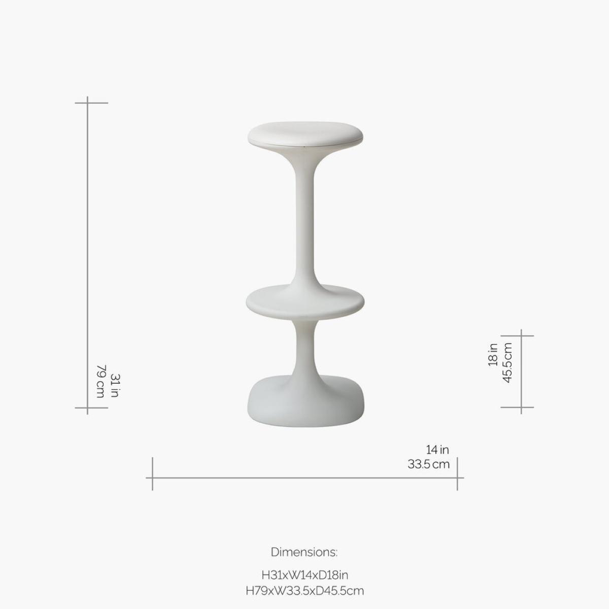 I love this stool for its sleek, minimalist design and versatile white finish, making it a great addition to both modern and contemporary interiors. It works particularly well in kitchens with a clean, streamlined aesthetic or as occasional seating in a stylish bar or lounge area. For styling tips, consider pairing it with other neutral or monochromatic pieces to highlight its sculptural form, or use it as a statement piece alongside textured materials like wood or concrete. Its compact size also makes it practical for smaller spaces, while its seamless design offers a timeless appeal that can complement a range of colour schemes and design schemes.