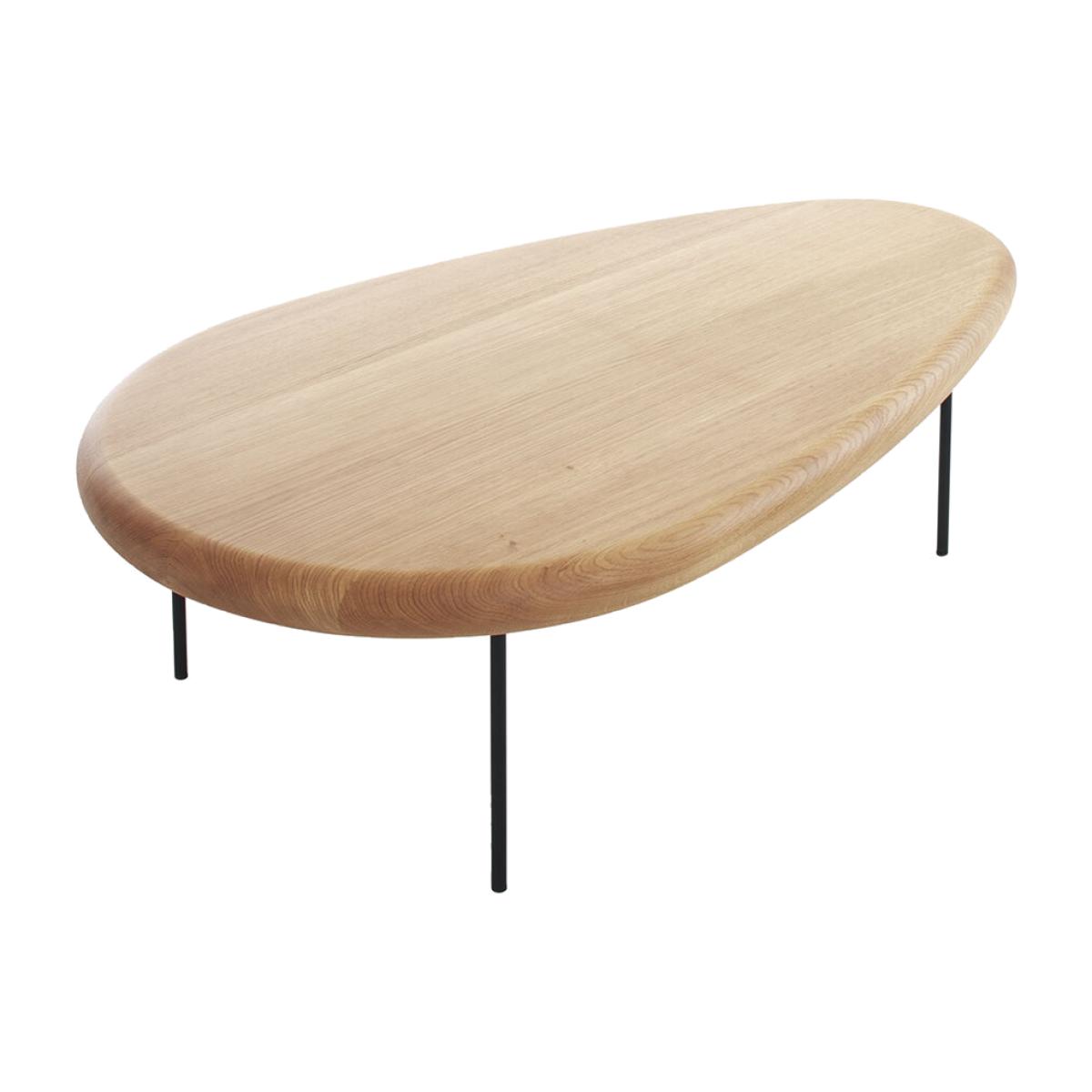 This coffee table takes inspiration from the elegant form of water lilies. Featuring a solid wood table top with natural grain detailing, it is beautifully curved and complemented perfectly by its minimalist black legs.