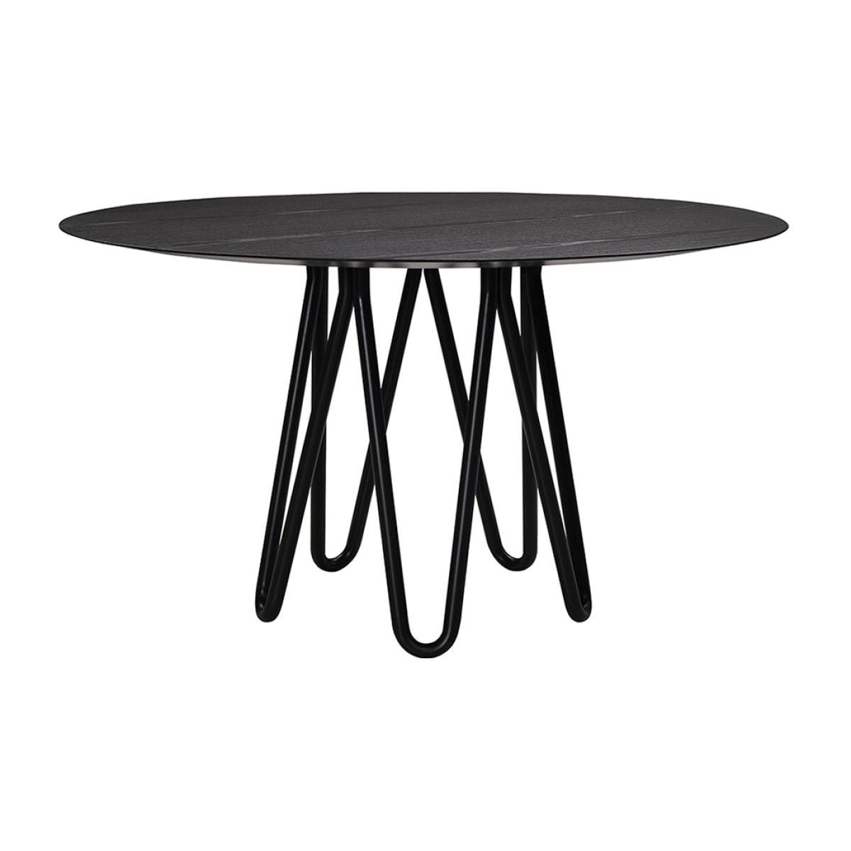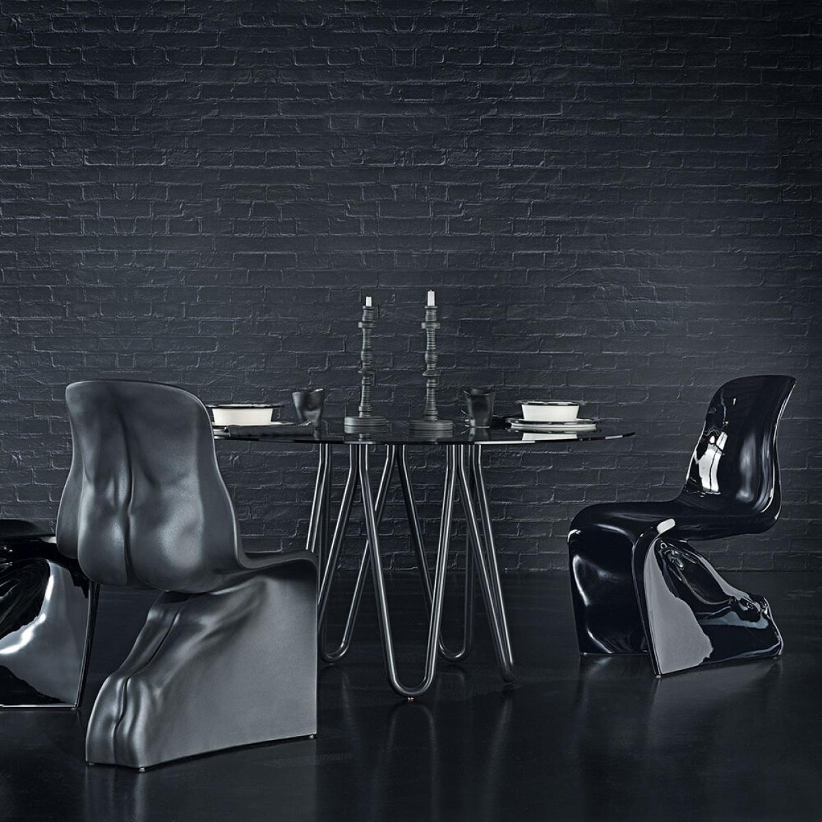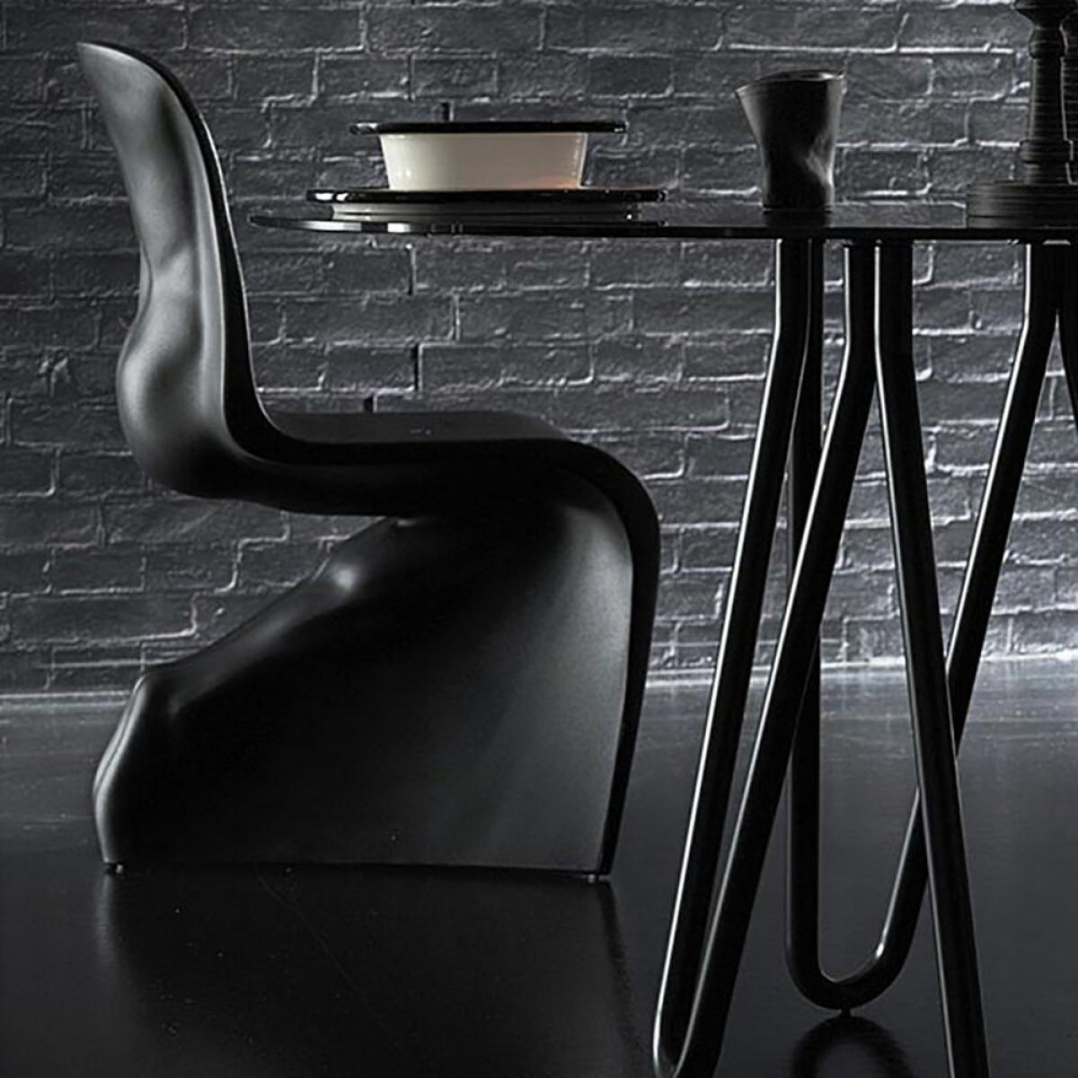 This dining table is inspired by the iconic form of the jellyfish. Designed by Gam. Fratesi, it features painted metal legs with a sleek glass table top. In solid black, it’s the perfect addition to your contemporary space.
