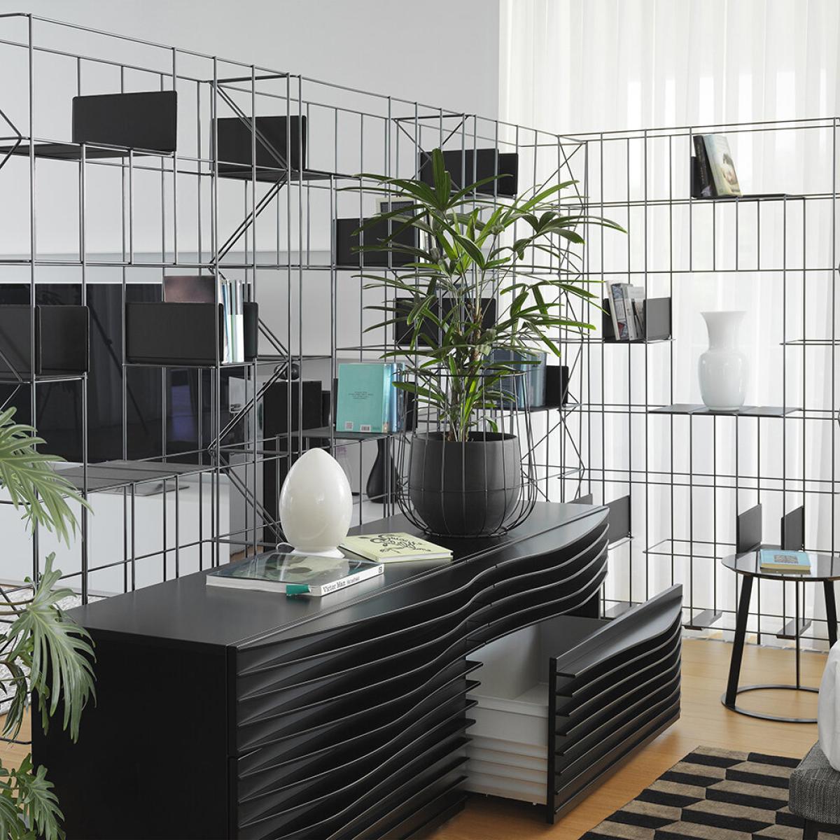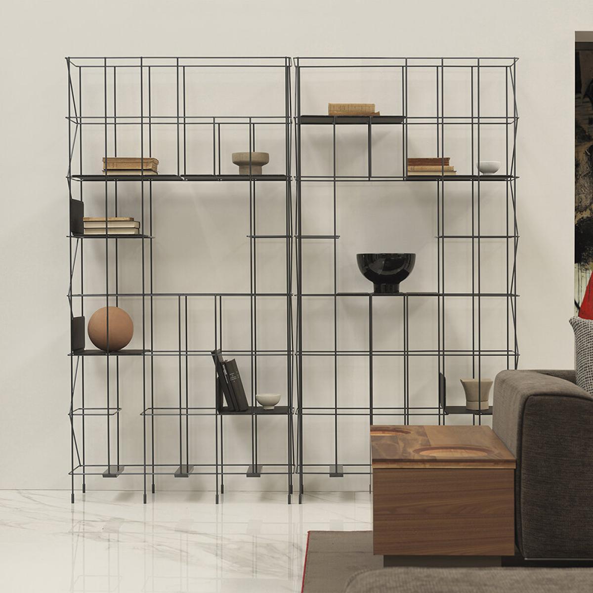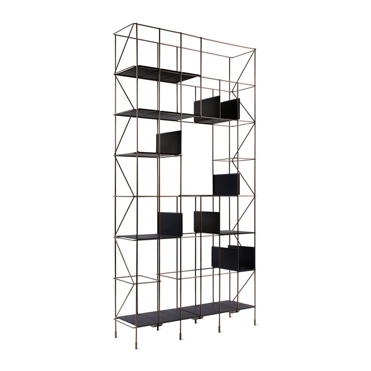 This multifunctional bookcase from Horm & Casamania will complement any space. Made from strong metal, it is lightweight in design with a slim, modular structure. The eco leather panels are equipped with magnets for locking onto the structure, allowing you to fully customise the design & function to suit your home. Two or more modules can be combined and joined by means of a clip supplied in the assembly kit, making this a truly unique piece that will suit any room. Key features: * Material: metal, eco-leather * Dimensions: 192x98x28cm * Lightweight in design * Bronze structure with black panels * With a slim and modular structure * Eco leather panels can change in line with the metallic structure * Allows you to fully customise the design and function * Adjustable feet * More furniture available from Horm & Casamania